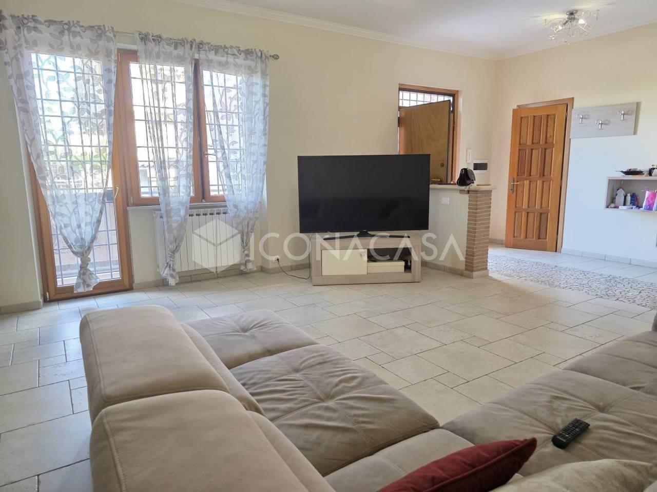 Iconacasa Ciampino propone in vendita in via Dell'Acqua Acetosa, soluzione semindipendente di 146 mq interni disposta su un unico livello, più patio esterno di 160 mq con piscina interrata e balcone esterno perimetrale. Ingresso indipendente dal patio esterno che ci conduce direttamente nella zona giorno con ampio soggiorno e bagno di servizio, disimpegno con cucina abitabile e camino con accesso al balconcino terrazzato e zona lavanderia. Successivamente dal disimpegno che divide la zona giorno dalla zona notte accediamo alla prima camera da letto matrimoniale, cameretta, bagno principale con vasca in muratura e terza camera con cabina armadio e bagno in camera con doccia. Tutti gli ambienti hanno accesso esterno. La soluzione ha tripla esposizione. Completa la soluzione una dependance sita all'interno del patio attualmente adibita a piccolo appartamento con due camere, ambiente unico e bagno. INTERNO Interamente la soluzione si presenta in ottimo stato conservativo. La porta d'ingresso è blindata mentre quelle interne sono in legno massello a battente. Infissi in Pvc color legno con doppio vetro, persiane ed inferriate presenti in tutti gli ambienti. Presenti due bagni, entrambi finestrati, il primo con vasca in muratura e sanitari bianchi sospesi, il secondo all'interno della camera patronale con doccia in pietra. Pavimentazione in pietra/ceramica omogenea in tutta la zona giorno mentre nella zona notte è parquet. Presente uno split nella camera da letto, predisposizione nel soggiorno. Riscaldamento autonomo con bombole. Citofono normale e videocitofono. ESTERNO Esternamente si presenta in buono stato, con ampio patio perimetrale e balconcino terrazzato per ospitare cene d'estate. È possibile posteggiare all'interno del patio direttamente dal cancello carrabile, con possibilità di parcheggio per più auto. Presente dependance con condizionatore ed allacci acqua e luce. La soluzione ospita una graziosa piscina interrata attualmente non in utilizzo. Presente ripostiglio esterno, attualmente adibita a deposito attrezzi. DESCRIZIONE POSIZIONE Ci troviamo in Via Acetosa, a 500 mt dalla stazione Acetosa, 200 mt farmacia ,supermercato, bar ed alimentari nelle immediate vicinanze. A 4,7 km dall'aereoporto di Ciampino, a 2,5 km dal grande raccordo anulare e a 21 km da Roma centro. 4 MOTIVI PER ACQUISTARLO 1. PISCINA ESTERNA 2. OTTIMO STATO INTERNO 3. DEPANDANCE 4. DOPPI SERVIZI