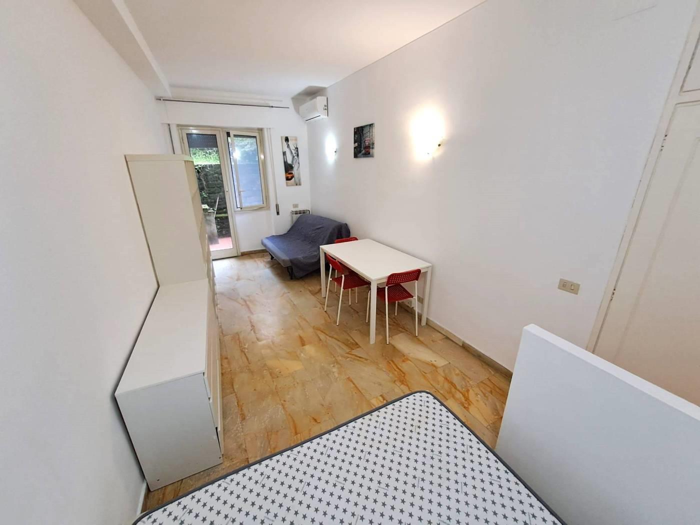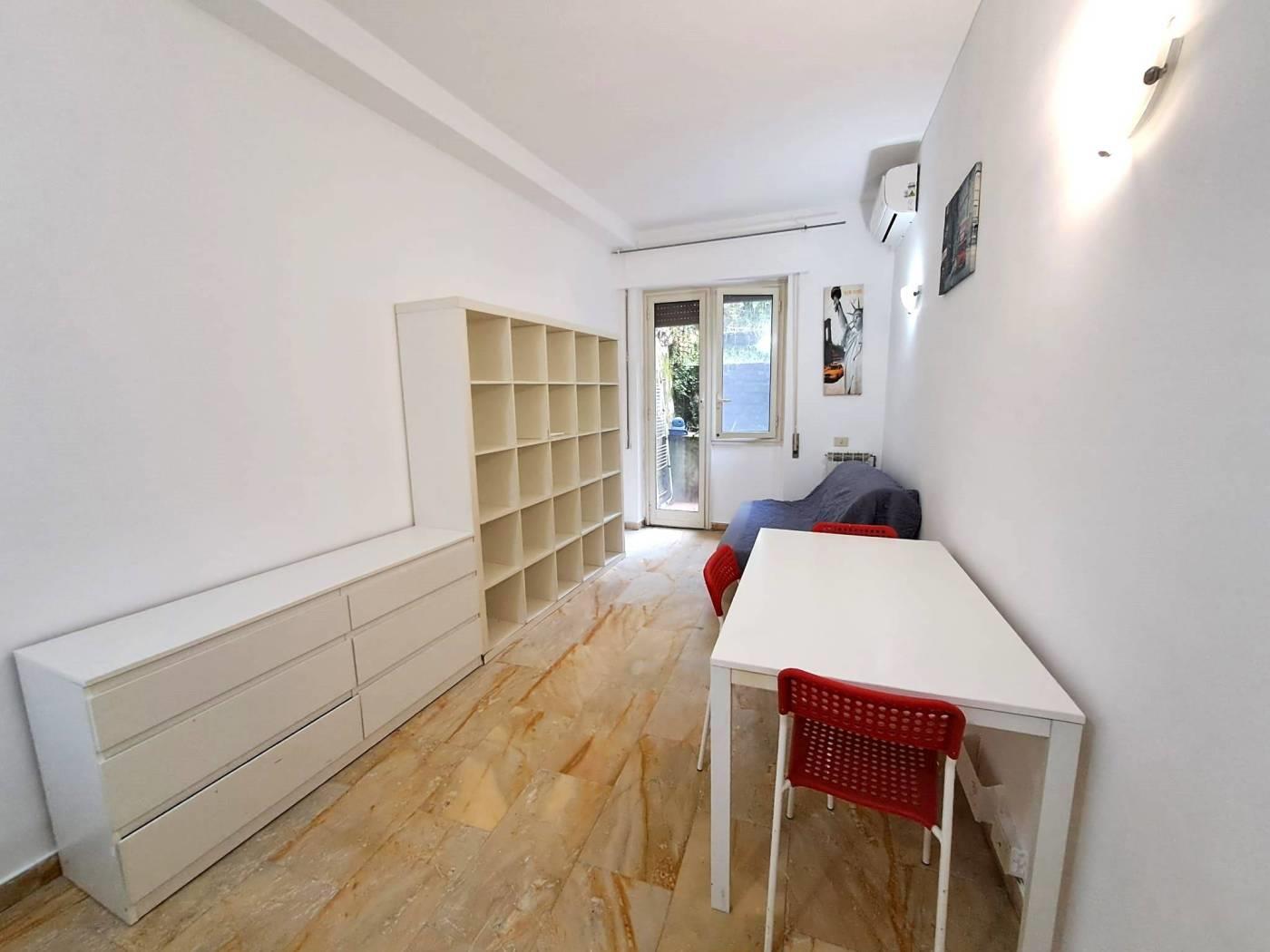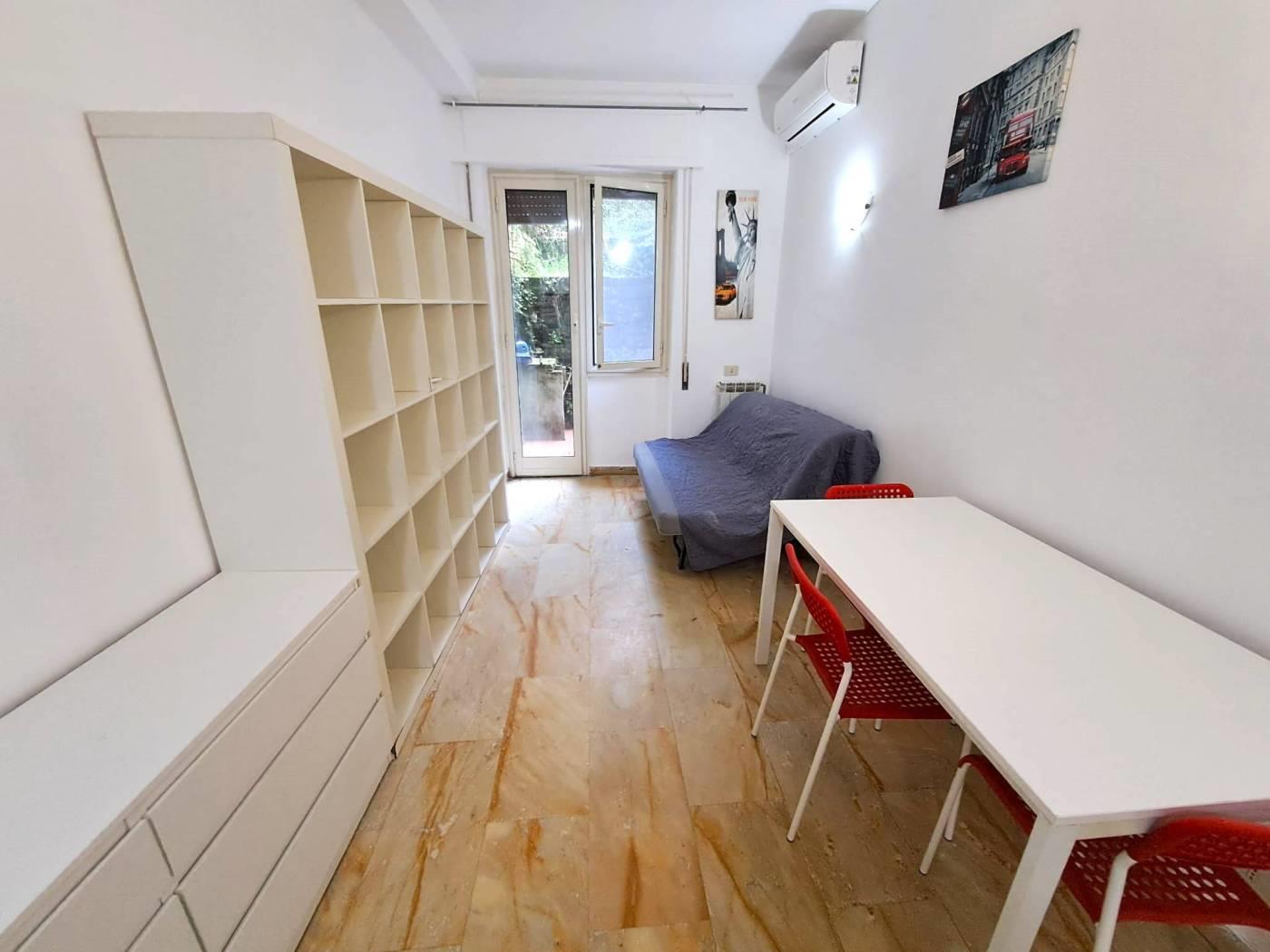 L’immobile posizionato al piano terra di un elegante palazzina risulta attualmente composto da: ampio vano con possibilità di divisione in zona giorno e zona notte, angolo cottura con finestra, bagno con finestra, lavatrice e box doccia e piccolo patio esterno.