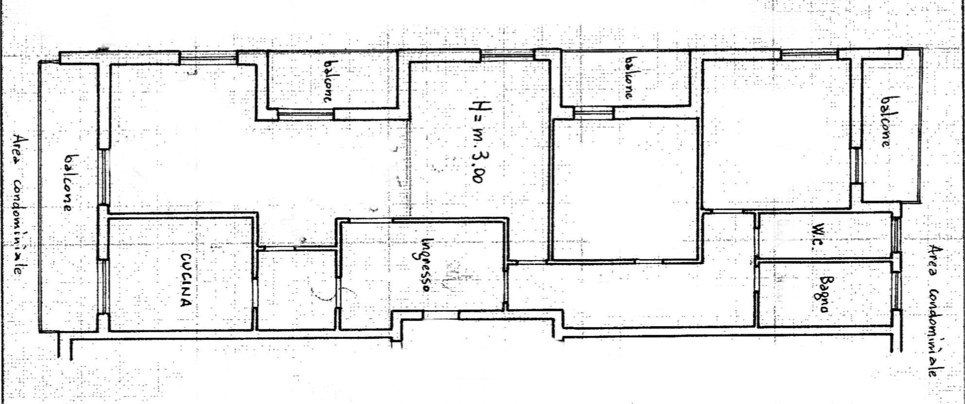 Internamente composto da: salone, cucina, tre camere, due bagno, ripostiglio e quattro balconi. Completano la proprietà un box auto nell'autorimessa condominiale e una cantina.