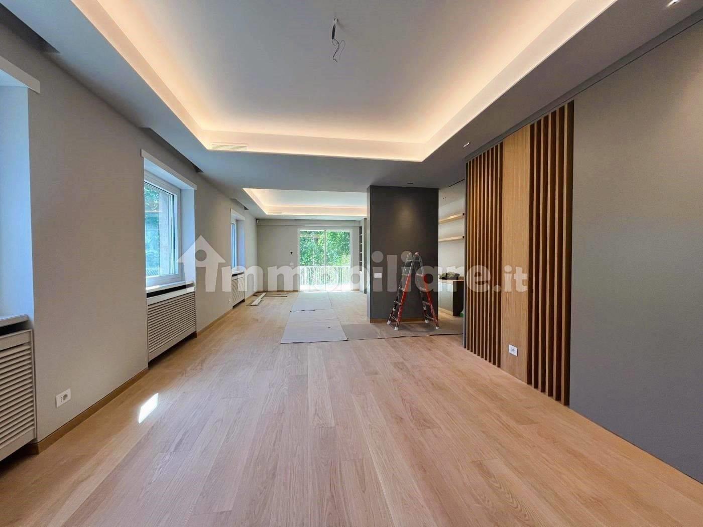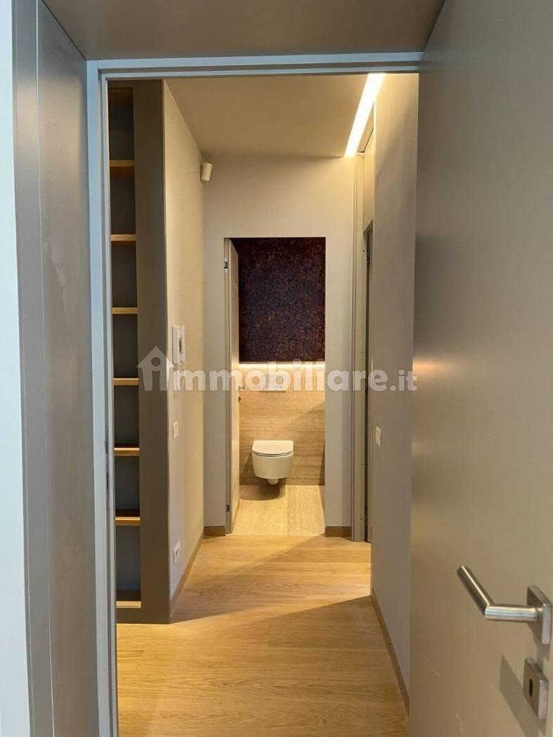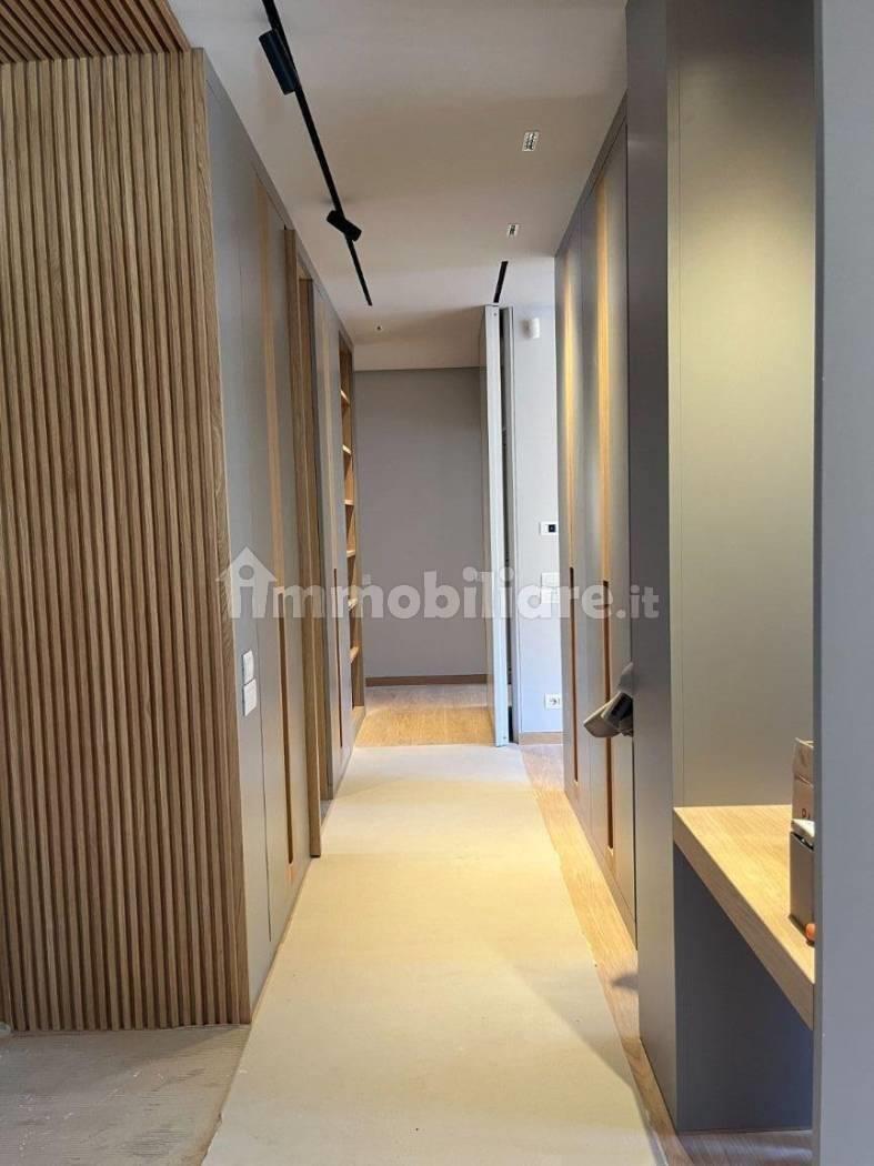 L’immobile ha una superficie interna di mq. 170 oltre ad un terrazzo di mq. 20 ed è composto da: ingresso con salone doppio e zona pranzo, luminosa cucina arredata con mobili di falegnameria, armadio lavanderia, top in Laminam bianco ed elettrodomestici di alta gamma e a basso consumo. Nella zona notte troviamo una suite padronale parzialmente arredata con armadi, cassettiera, scrivania e libreria di falegnameria, un ampio bagno, una stanza da letto con bagno en suite ed un bagno per gli ospiti. Dalla cucina si accede ad un'ulteriore camera con bagno di servizio. L’appartamento è dotato di riscaldamento autonomo, impianto di climatizzazione, impianto antintrusione, infissi Finstral.