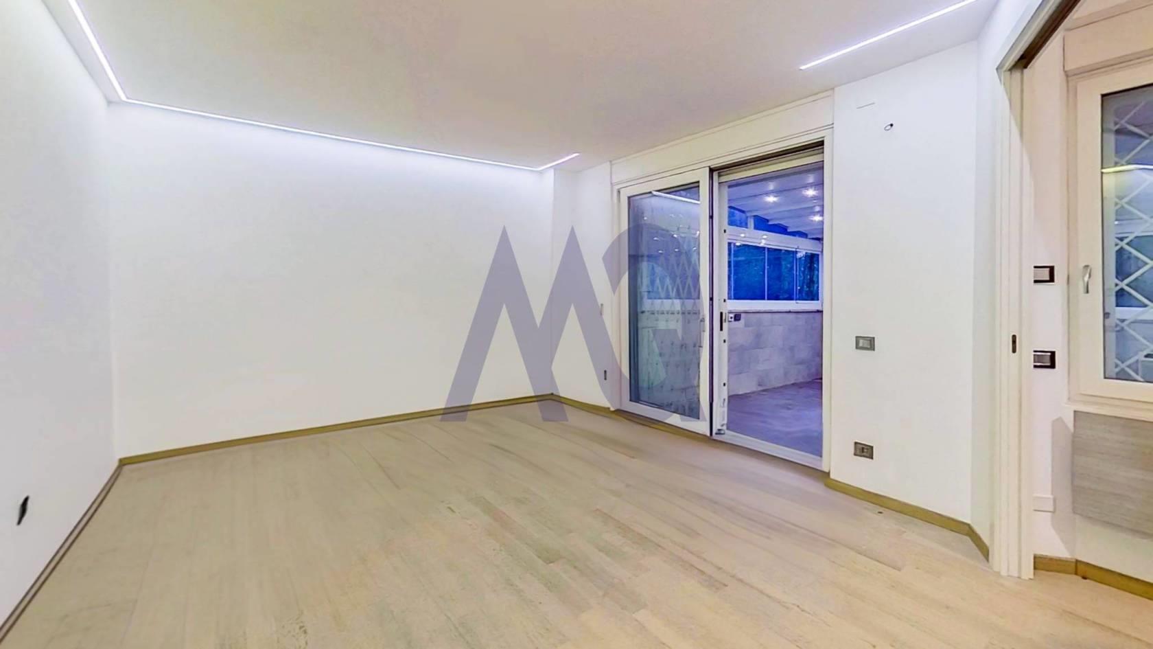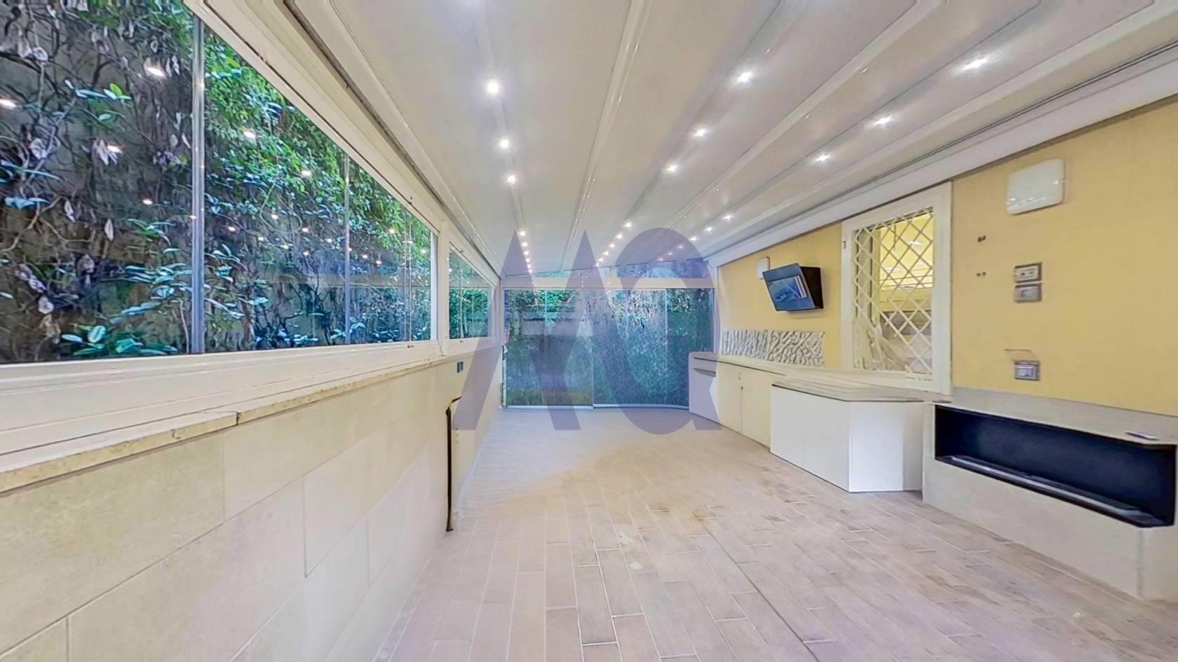 Via Archimede adiacente piazza Euclide, proponiamo in vendita uno splendido trilocale posto al piano terra con ampio spazio esterno. L’immobile è stato acquistato dalla proprietà nel 2015 ed in seguito veniva effettuata una ristrutturazione di grande gusto e molto attenta al comparto di efficientamento energetico e tecnologico, adoperando soluzioni davvero insolite per un simile taglio immobiliare. La casa è stata coibentata completamente utilizzando un cappotto interno in fibra di legno, gli infissi sono a cinque camere con argon e permettono una insonorizzazione ed isolamento acustico ottimale. Per il riscaldamento si è provveduto a distacco dal condominio, utilizzando una pompa di calore caldo freddo Daikin ad altissima efficienza, collegata a un pavimento radiante con funzione di riscaldamento ed anche di raffrescamento, reso inappuntabile da un impianto di ventilazione meccanica controllata canalizzata nel soffitto. Rete LAN cablata in tutta casa (anche all’esterno), impianto di filodiffusione, sistema di videosorveglianza HD con DVR, e impianto di allarme Tecnoalarm comandabile a distanza. Antintrusione con grate di sicurezza a tutte le finestre e porte finestre. L’immobile ha un ingresso indipendente oltre a quello principale, si può accedere direttamente dal giardino con impianto di irrigazione automatizzato. Internamente la casa presenta una ottimizzazione degli ambienti quasi maniacale ed è ristrutturata con grande gusto ed eleganza. Il pavimento in tutti gli ambienti è un parquet massello di alta qualità. Gli spazi interni sono così composti: Ingresso, splendida cucina con ampio snack, eventualmente separata da porte scorrevoli, soggiorno con tv, bagno, la zona notte è composta da due camere una delle quali con bagno en suite. Dalla enorme porta finestra scorrevole, si accede alla caratteristica principale della casa, uno splendido giardino di inverno di circa 40 mq, climatizzato chiuso da vetrate frangivento, coperto da una pergotenda motorizzata e illuminata, il tutto completamente regolare sotto il profilo normativo. In questo ambiente è anche presente una cucina esterna, ed una zona lavanderia. Questa porzione dell’immobile può essere utilizzata sia come living esterno, che anche come sala hobby. All’esterno di quest’ area ci si ricollega al giardino, all’ingresso indipendente e ad un vano tecnico per addolcitore, scaldabagno a gas e impianto di riscaldamento.