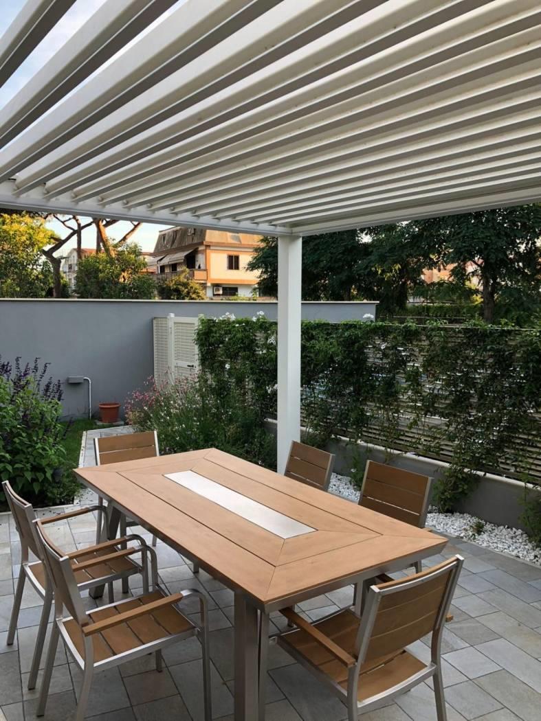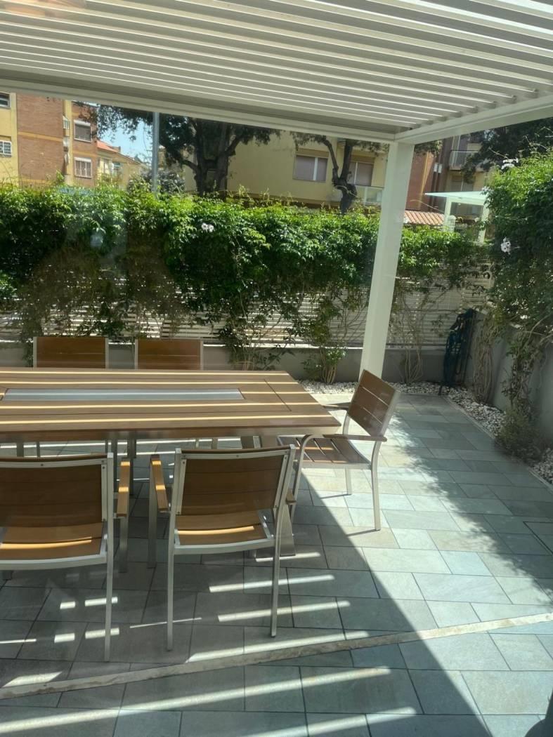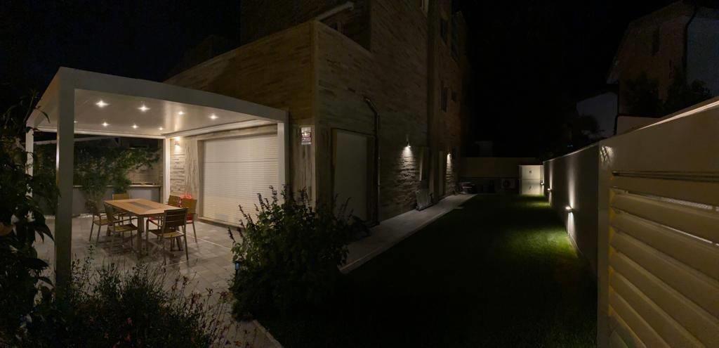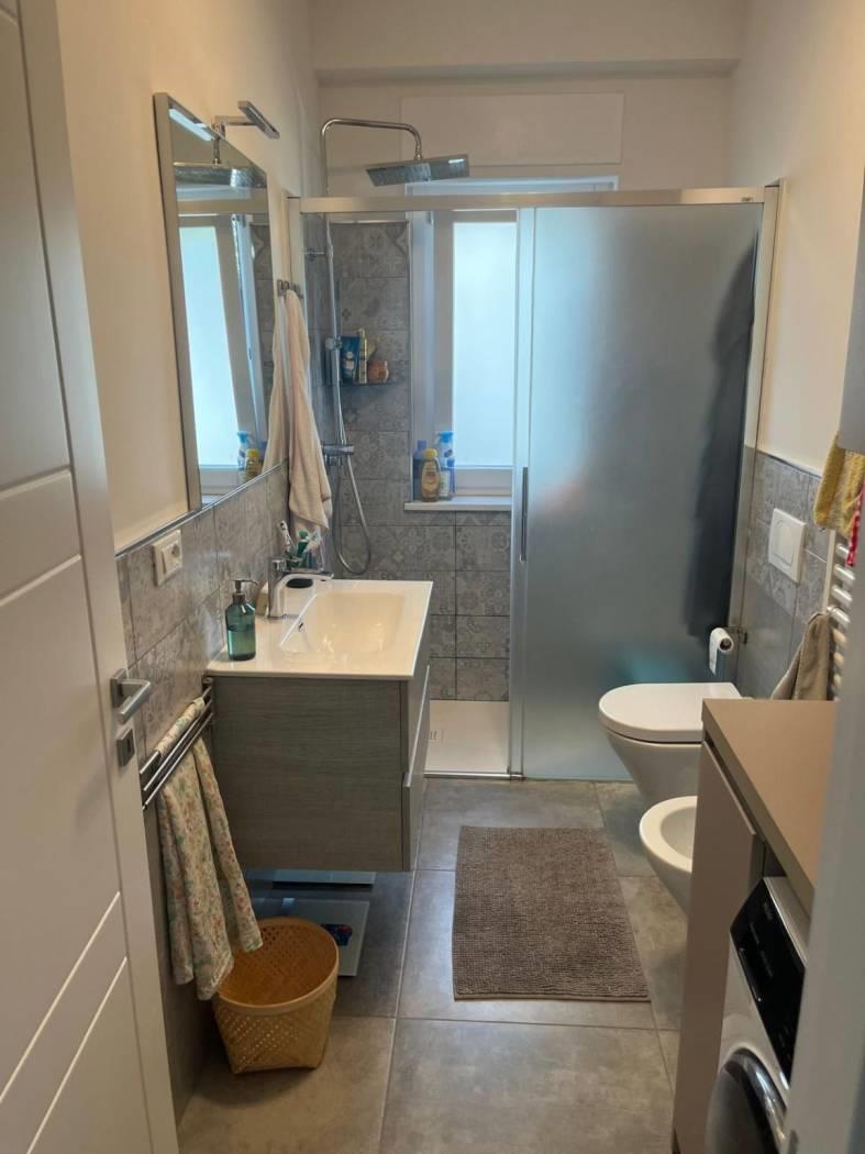bagno con doccia, giardino privato con pergotenda.