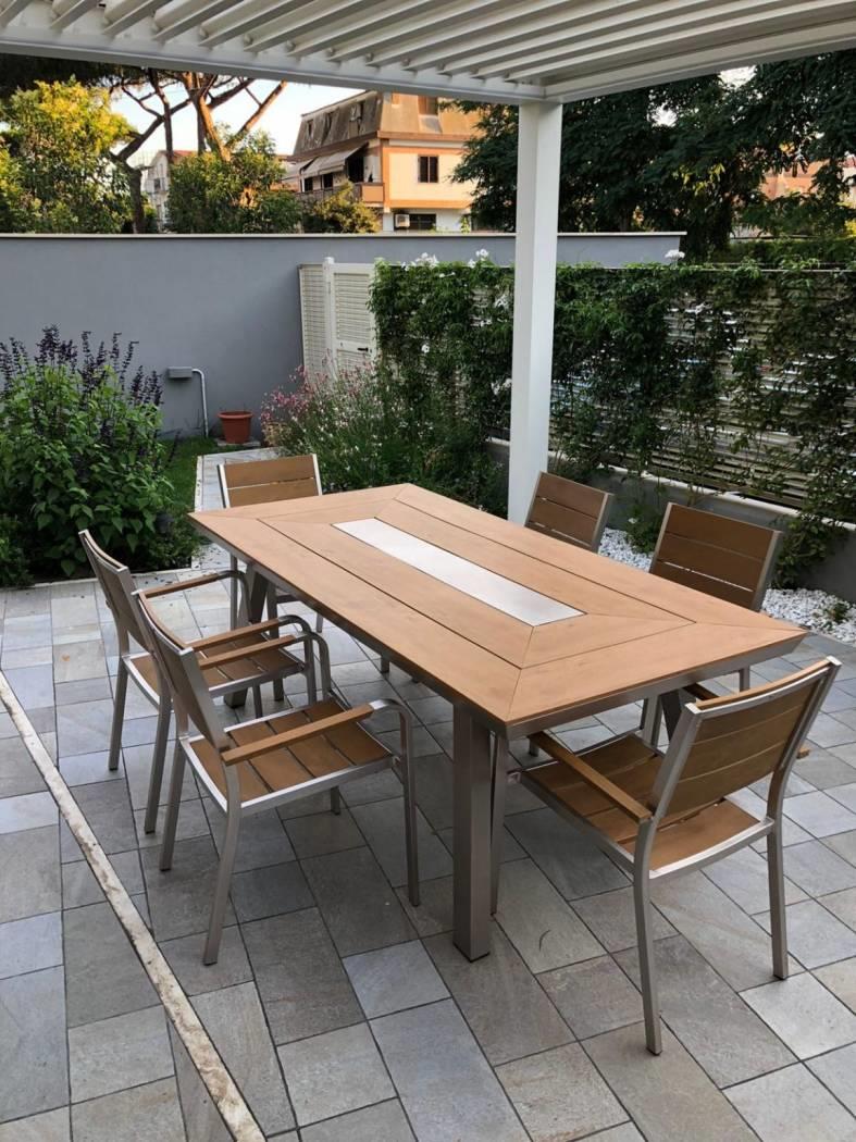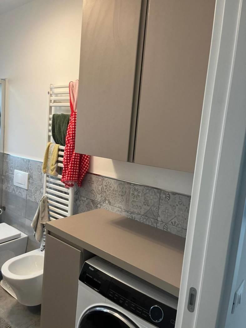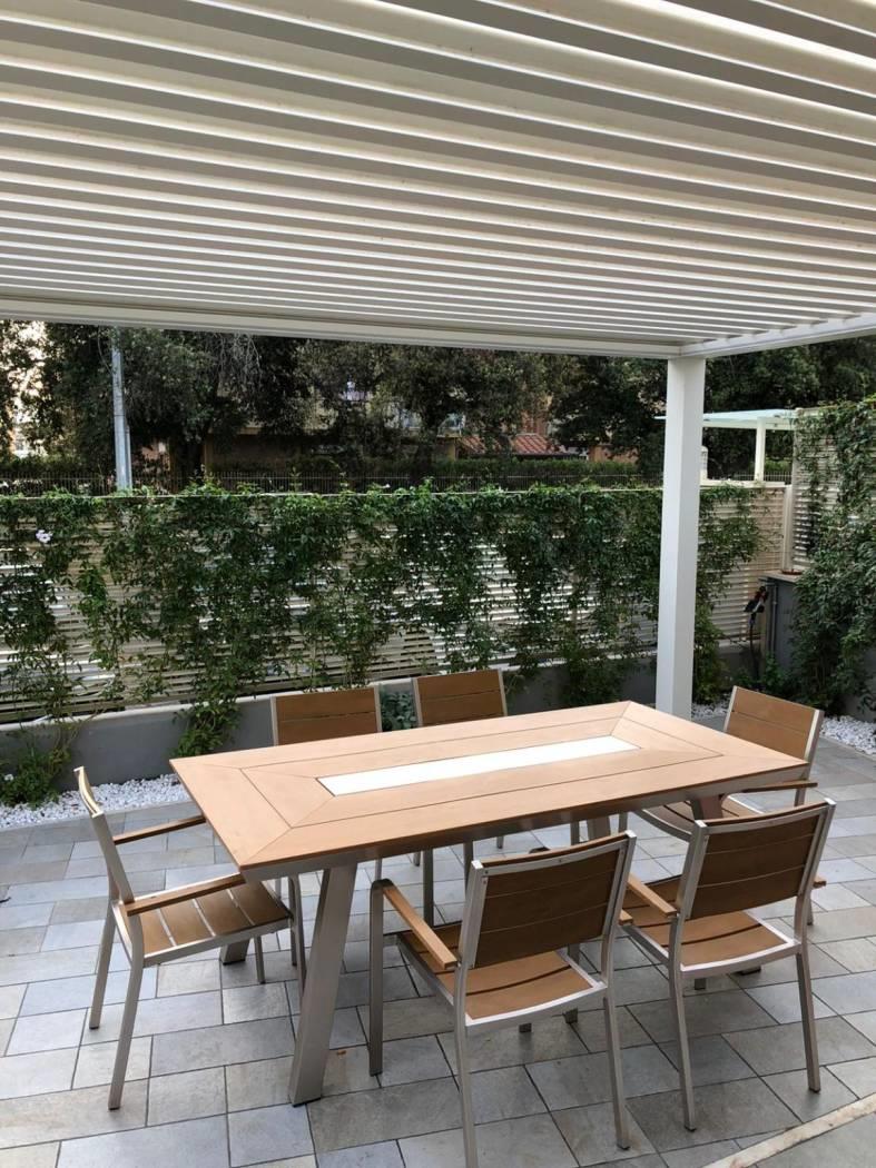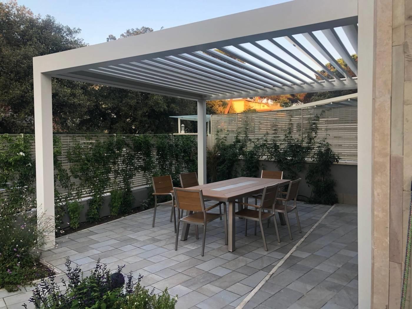 bagno con doccia, giardino privato con pergotenda.