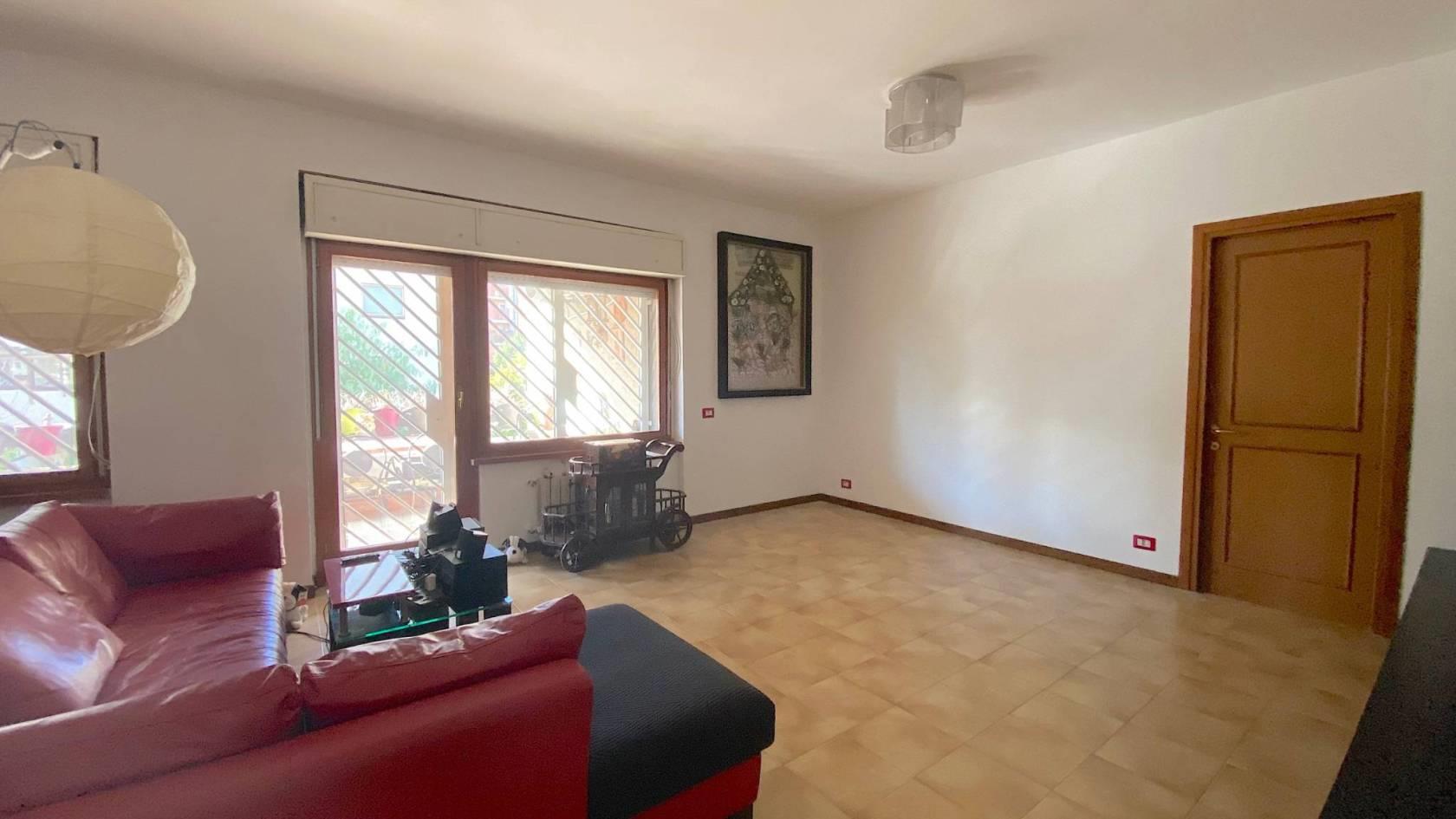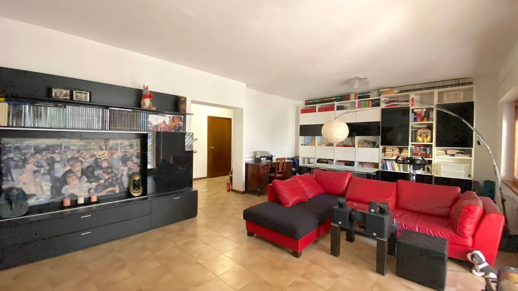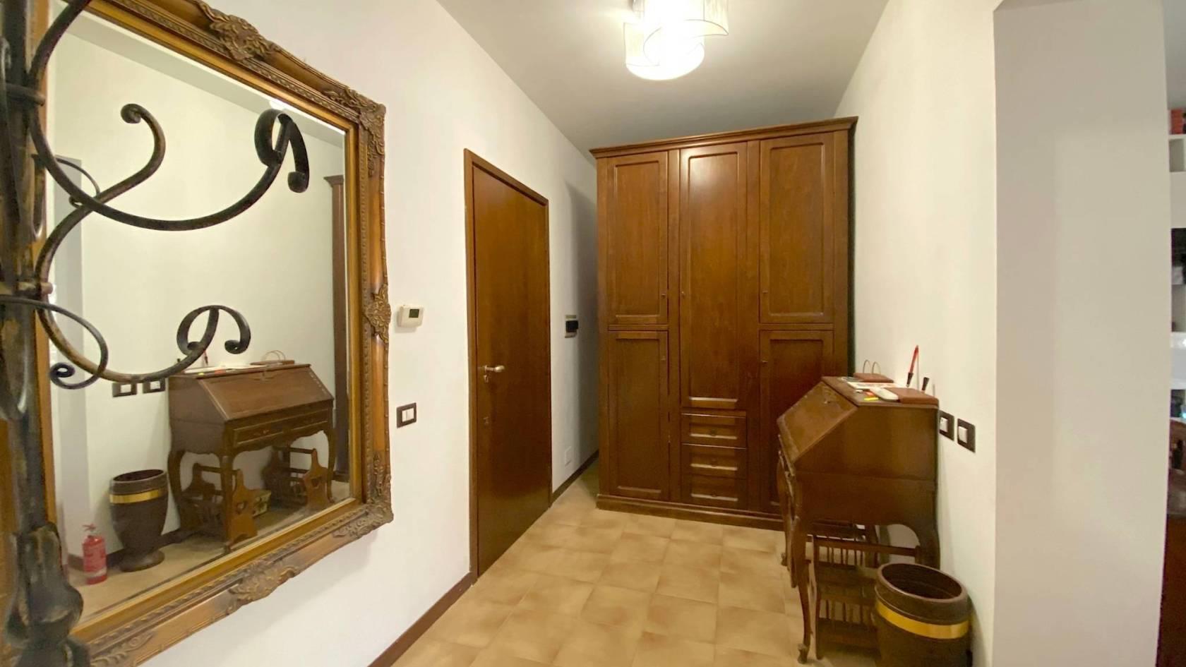 Le parti comuni sono articolate su ampio ingresso, salone doppio con sistema home-video, corridoio, ampia cucina tinello, entrambi i bagni sono dotati di doccia.