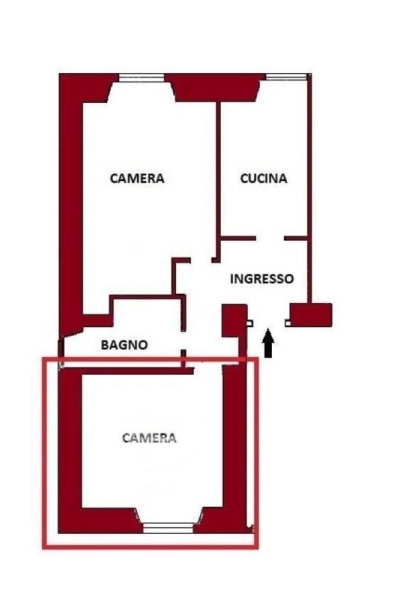 L'immobile nel complesso è composto da ingresso, cucina abitabile, due stanze (di cui una già locata), bagno in comune.
