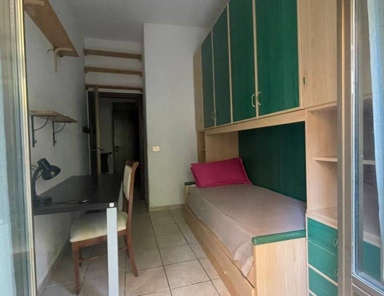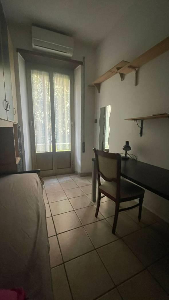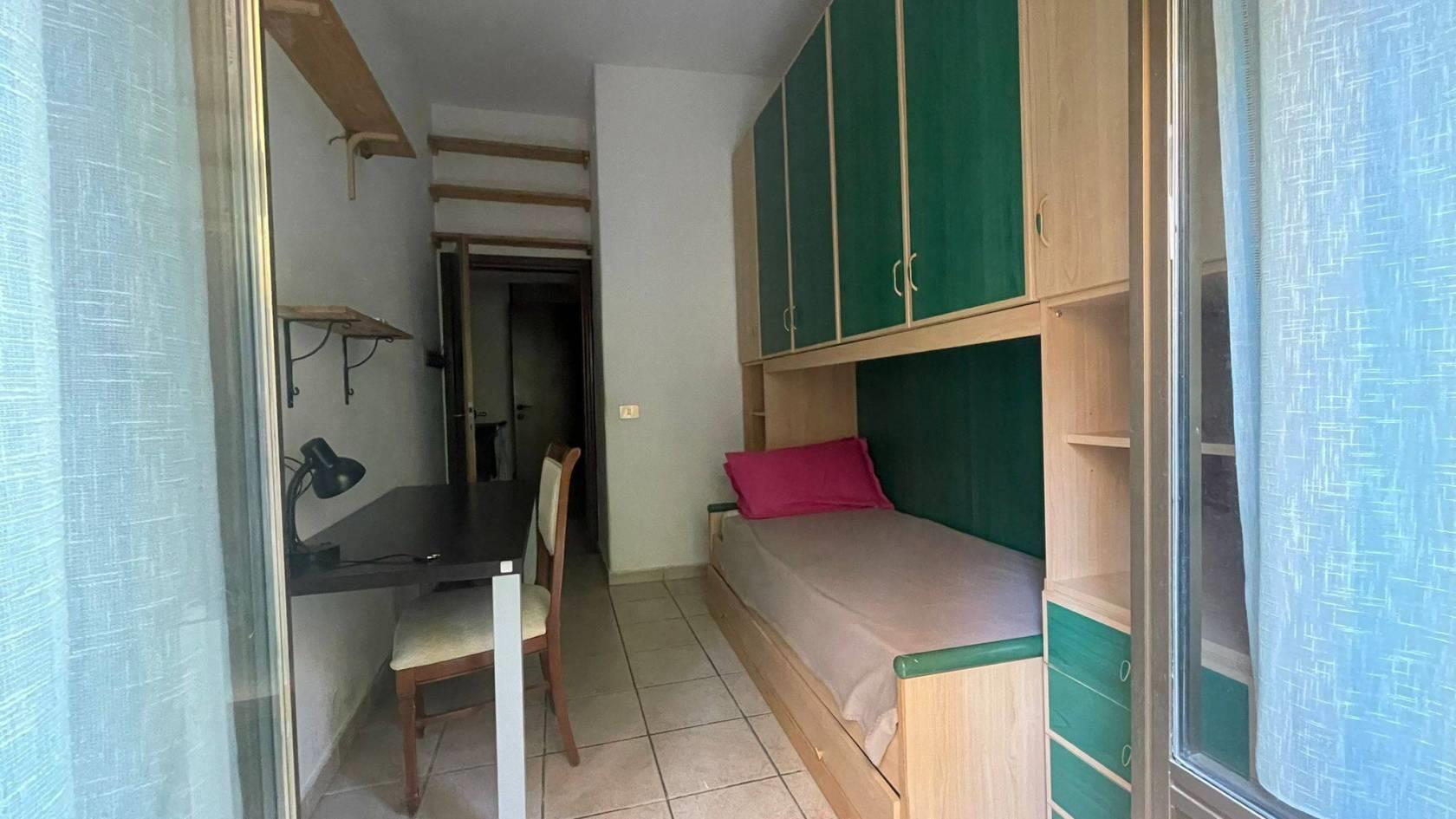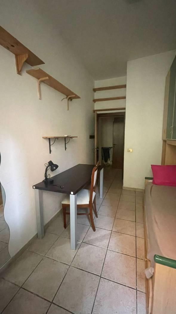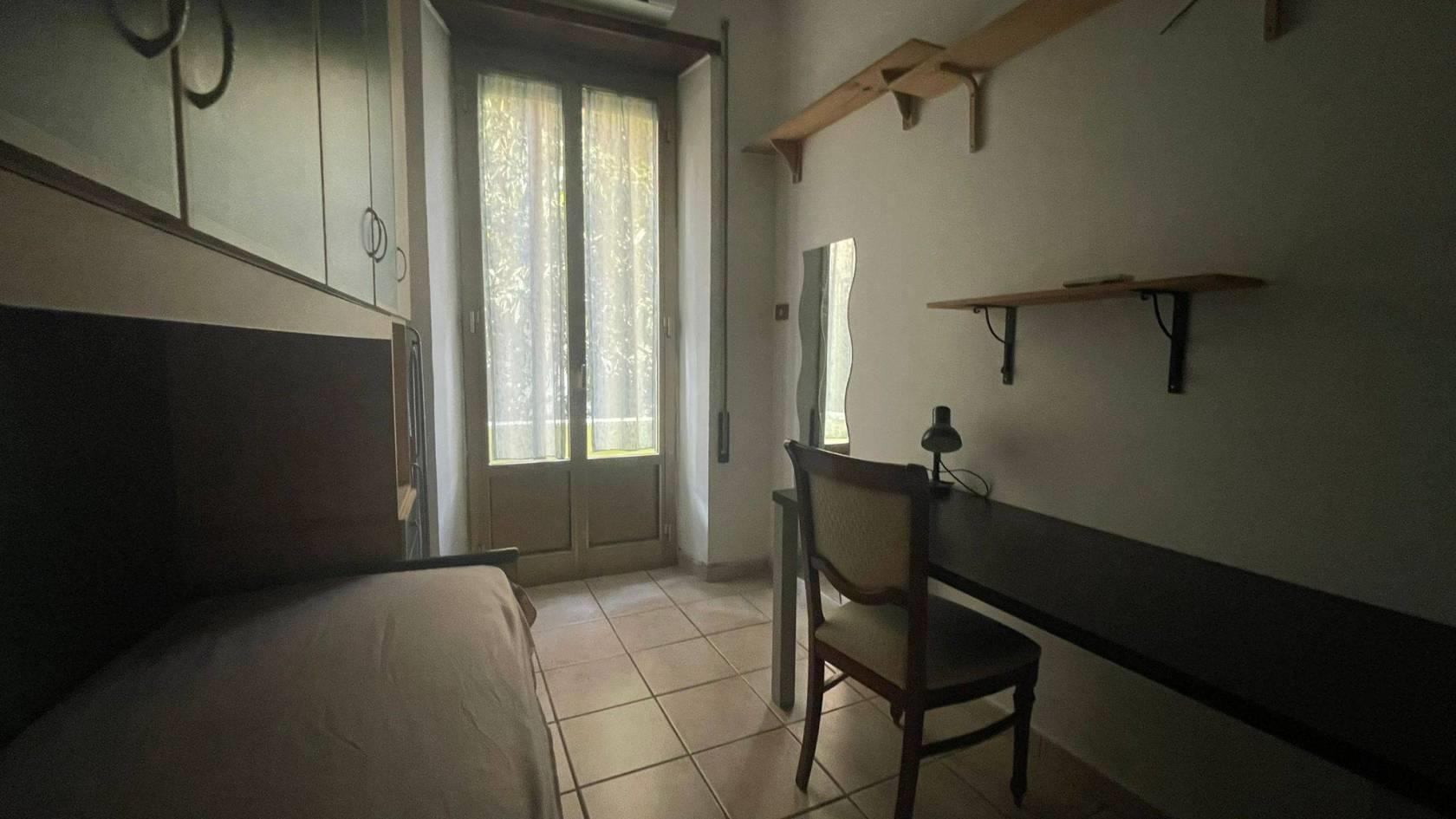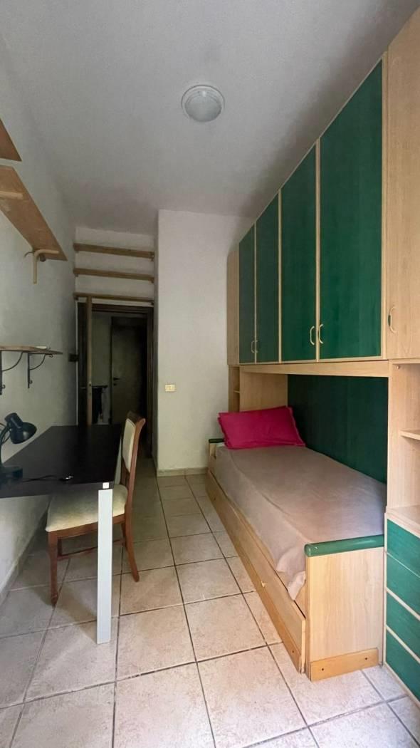 La camera è di circa 10 mq ed ha un letto singolo, un armadio a ponte e una scrivania.