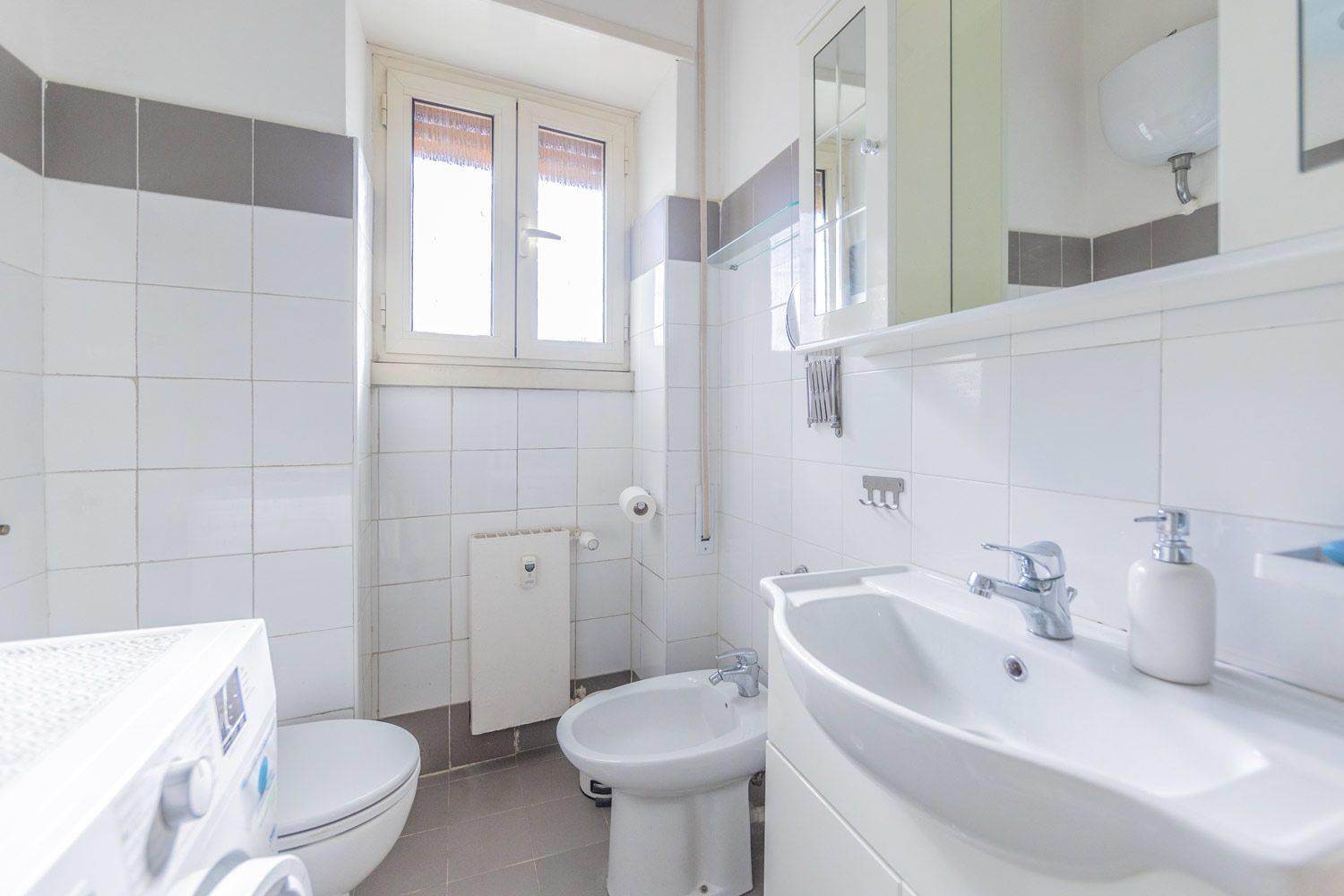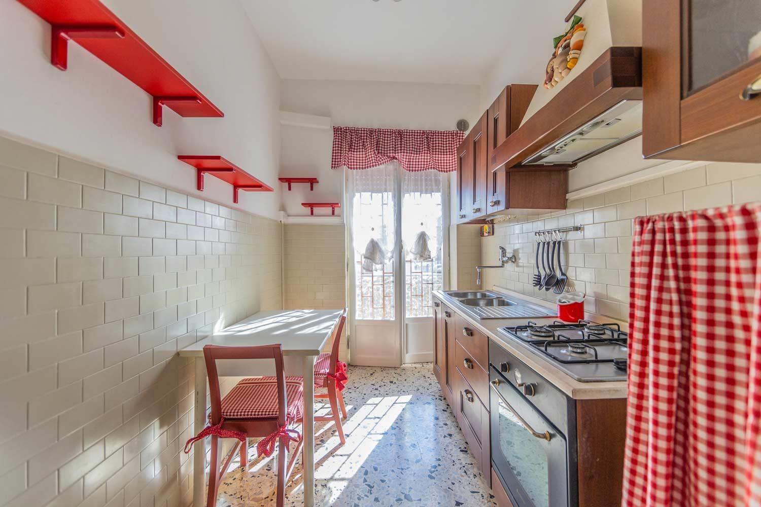 Uso in comune di bagno e cucina abitabile con balcone che affaccia su una strada secondaria tranquilla con vista aperta sulle palazzine circostanti, ideale per chi cerca uno sfogo esterno riservato e gradevole.