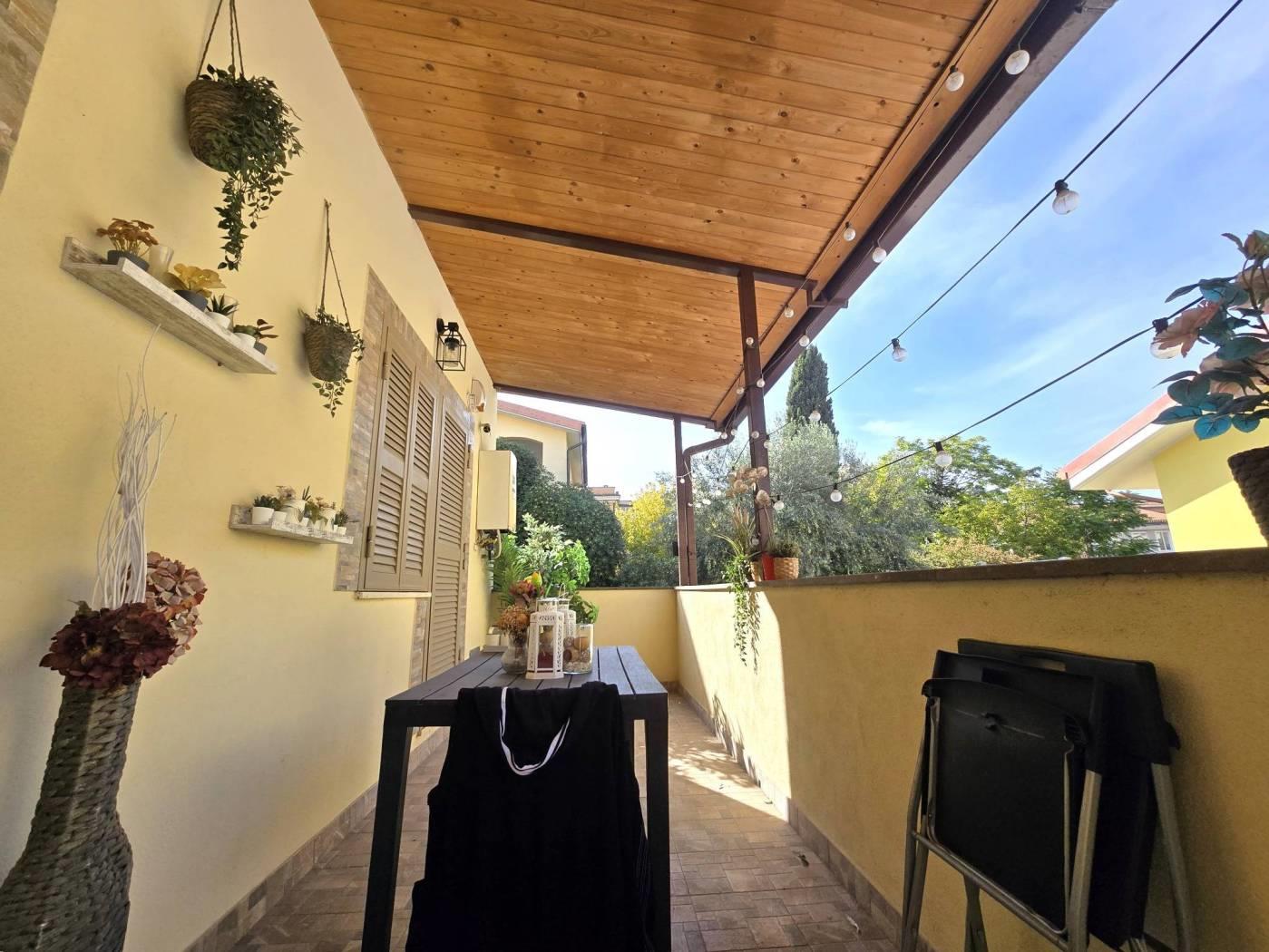 Nel cuore del residenziale quartiere delle Statuario, a pochi passi da tutte le principali attività di zona, l'agenzia immobiliare Frimm, propone in vendita appartamento trilocale indipendente posto al piano terra con terrazzo. L'immobile, che si presenta come un villino a schiera su di un unico livello, all'interno di un complesso di sole 5 unità immobiliare tutte indipendenti e senza quindi spese condominiali, è stato completamente ristrutturato nel 2019, componendosi attualmente come segue: - ampia zona living open space di oltre 30 mq. con angolo cottura; - zona di disimpegno/corridoio con soppalco; - camera matrimoniale con bagno privato interno completo con doccia e finestra; - cameretta; - bagno cieco completo con doccia; - terrazza vivibile; Completa la proprietà un posto auto interno. L'immobile ha una buona luminosità in quanto gode di tripla esposizione. Sono presenti grate e persiane blindate su tutte le finestre, ed ha la predisposizione per l'impianto di allarme.