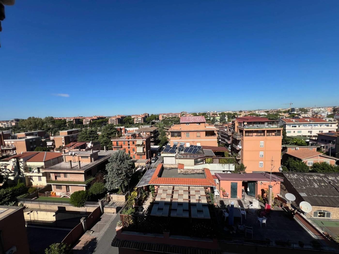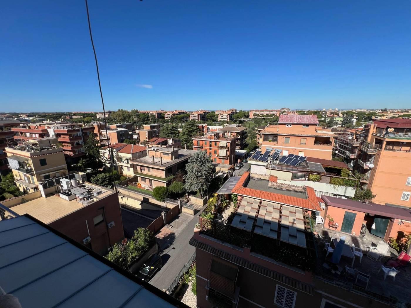 Via Aurelia adiacente Ergife esattamente in via Ugo da Porta Ravegnana, in palazzina ristrutturata proponiamo in vendita un superattico da ristrutturare, unico al piano panoramico, con ascensore che arriva al 4° piano e poi una rampa di scale a piedi, quadrupla esposizione composto da ingresso, saloncino con camino, due camere, cucina tinello con balcone mt 2,00x2,20, servizio e ripostiglio. Possibilità secondo servizio. Termoautonomo. Armadio a muro. Euro 339.000,00.