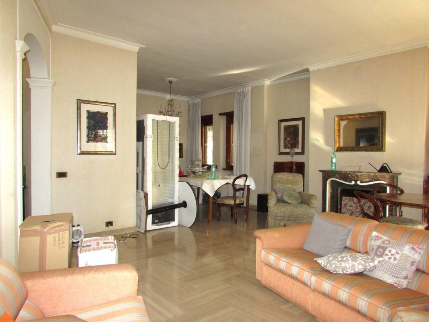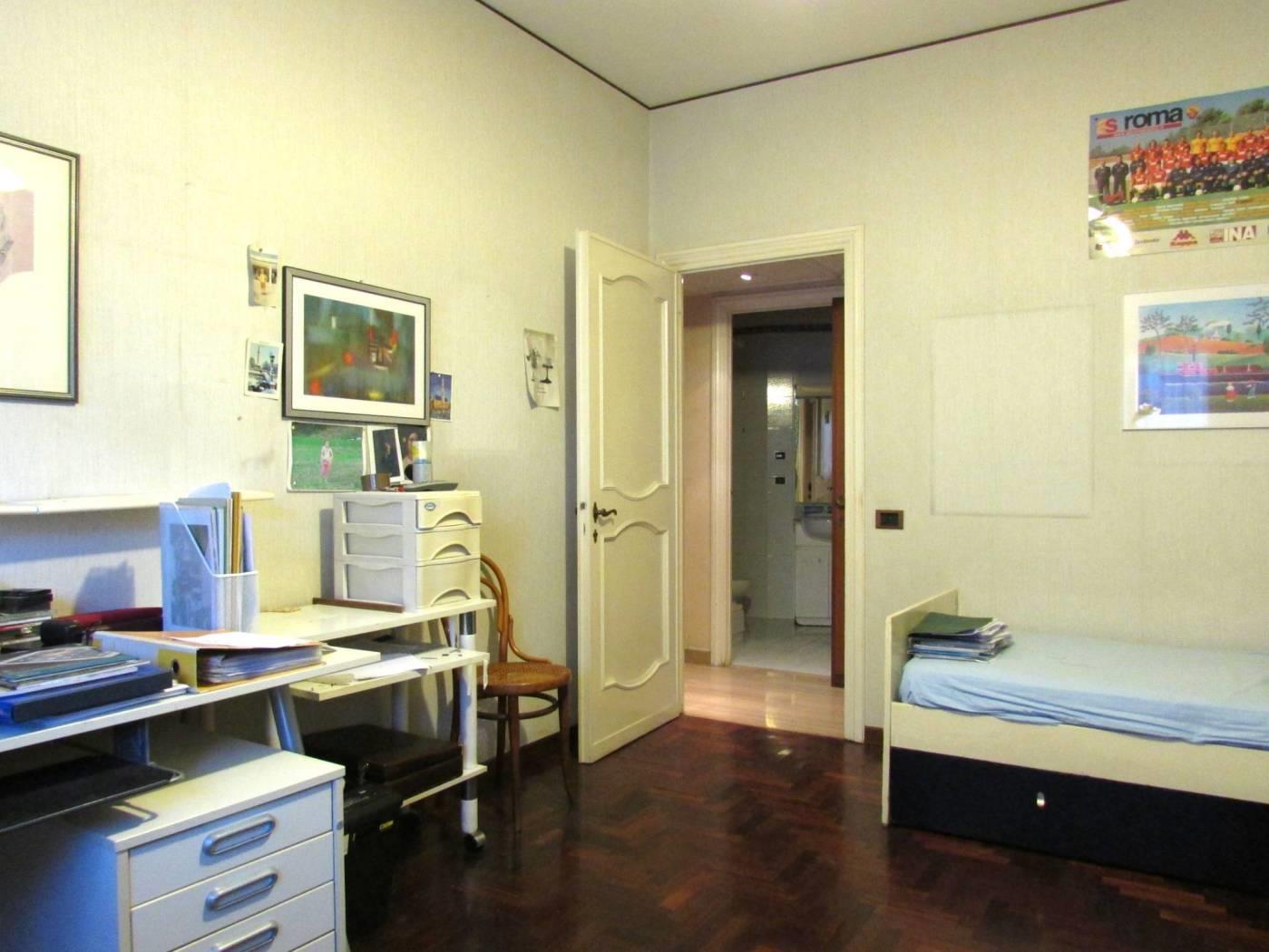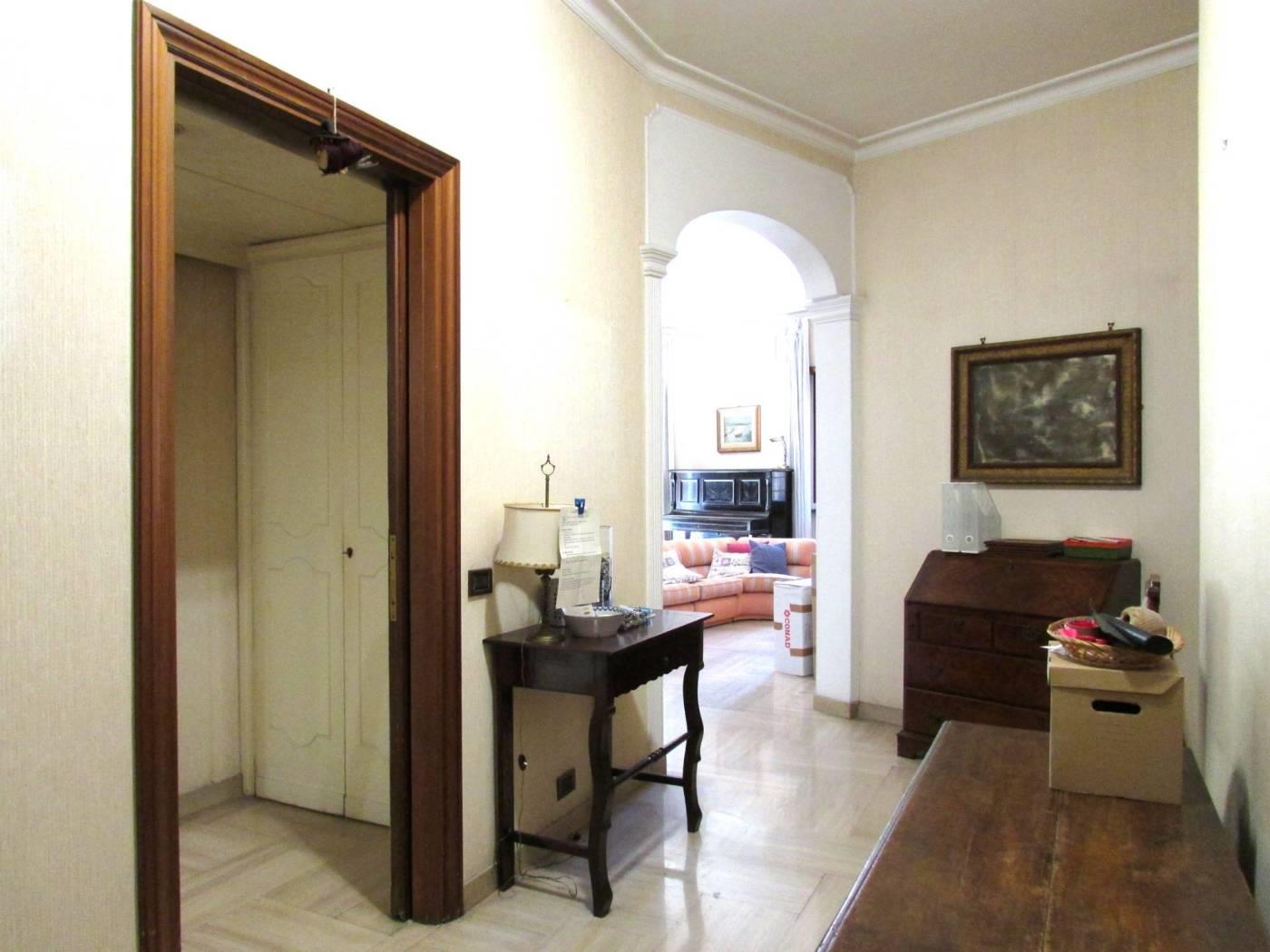 Immobile composto di: ampio disimpegno d'ingresso, salone doppio molto grande (originariamente ampio salone, cameretta e servizio), tre grandi camere da letto, cucina abitabile, doppi servizi (di cui uno cieco e con sistema sanitrit), disimpegni ampi, armadio a muro, lunghe balconate che si allargano a terrazza abitabile difronte al salone, una cantina di 6 mq.