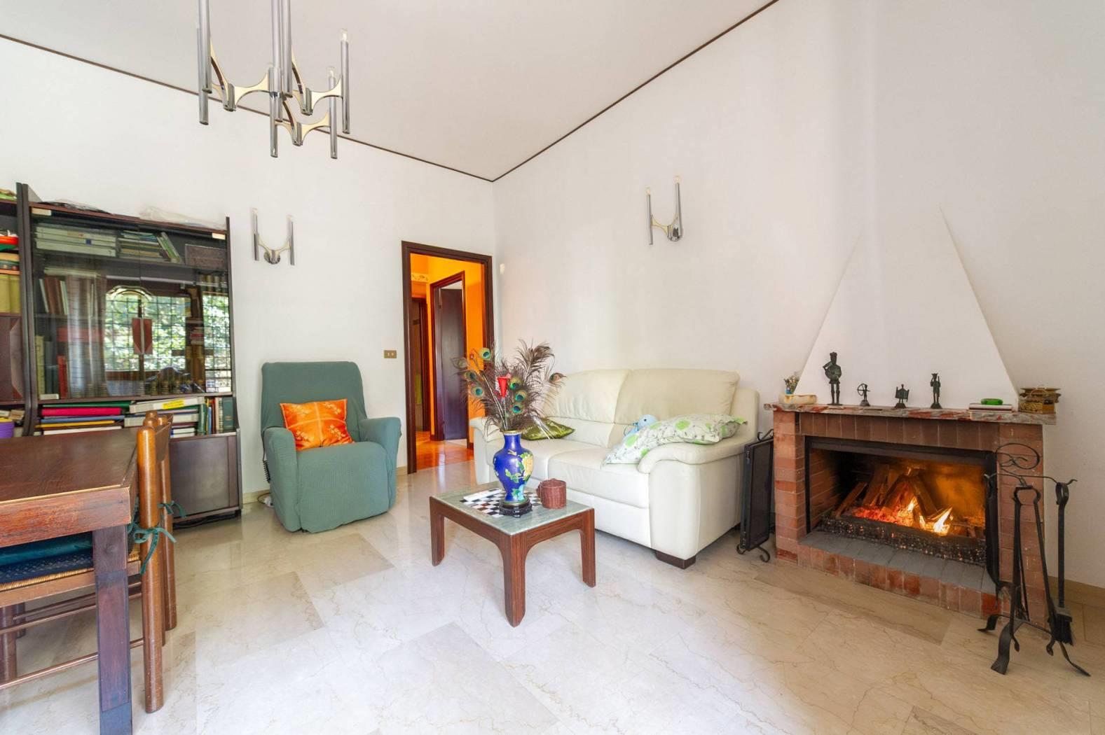 La zona giorno presenta un pavimento in ottimo marmo chiaro, mentre la zona notte e servizi hanno pavimenti in ceramica. Le finestre sono in legno Douglas con avvolgibili e inferriate in acciaio.