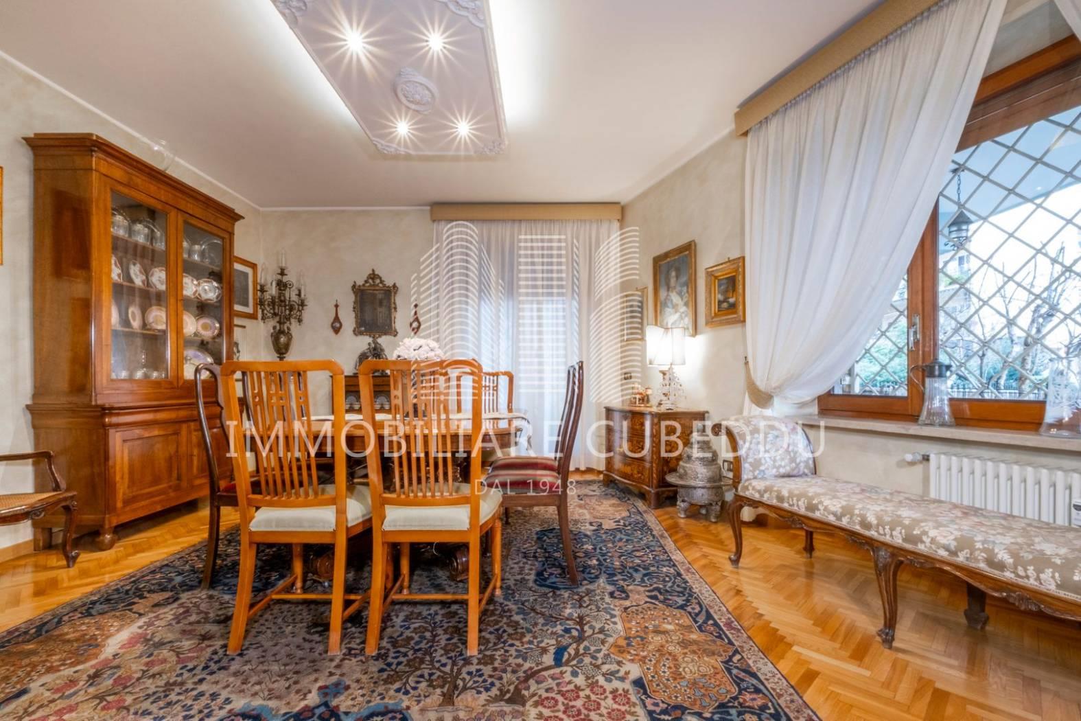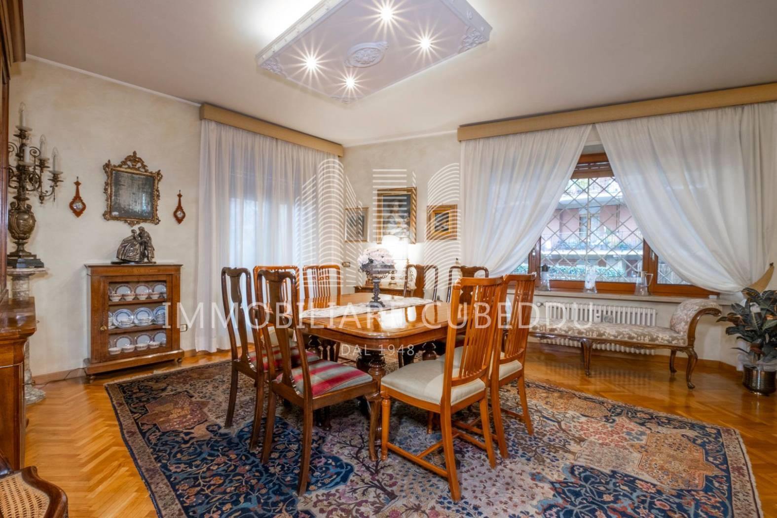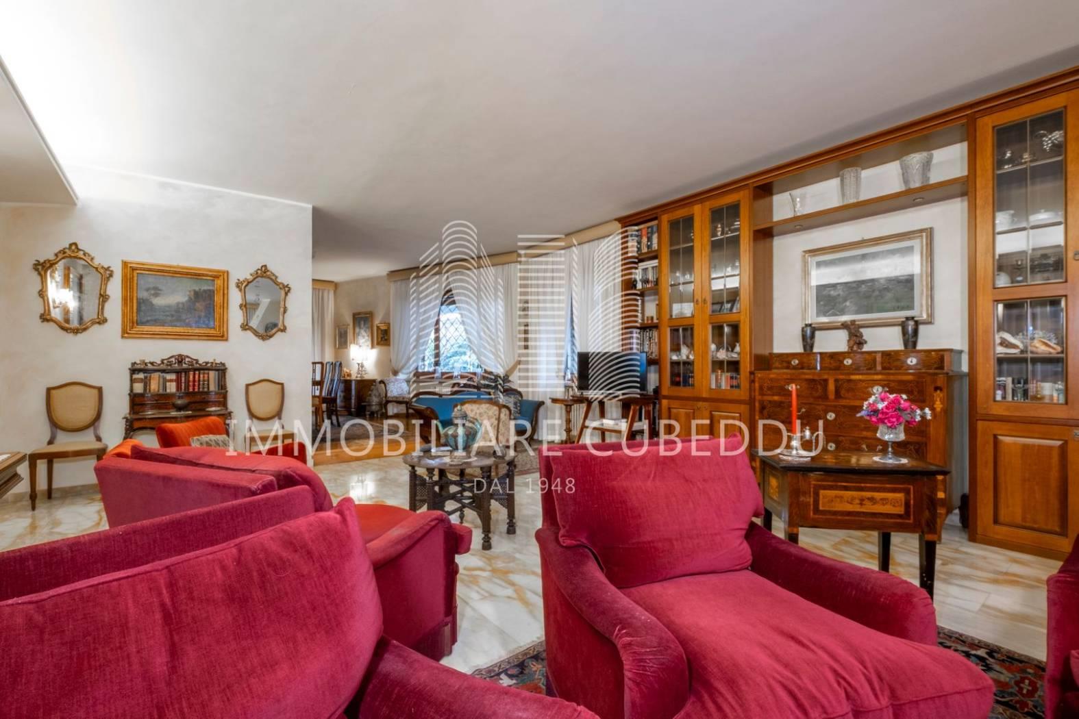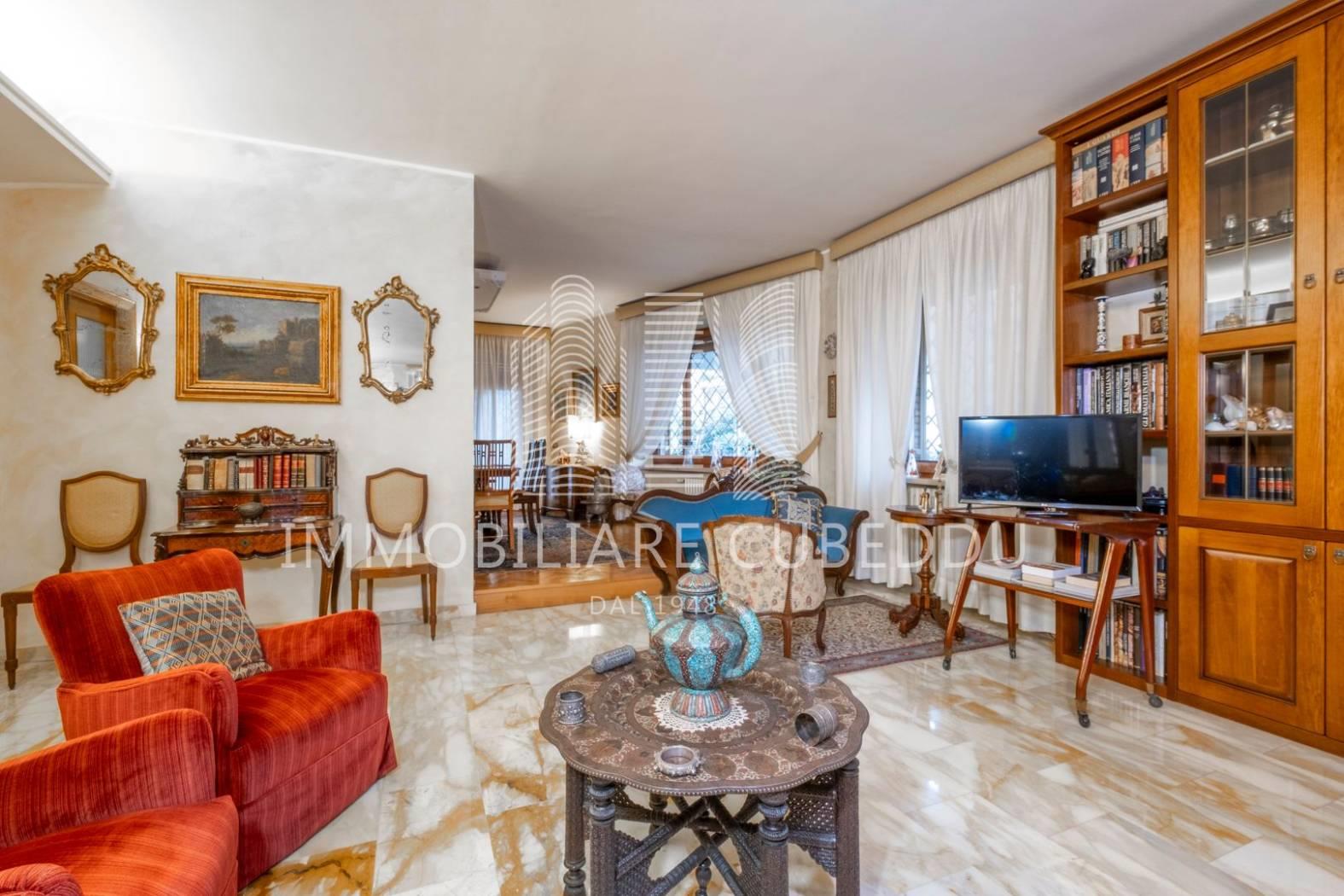 Proponiamo in vendita un prestigioso appartamento ad uso abitativo situato a Roma, in Via Francesco d’Ovidio, nel quartiere Talenti – Monte Sacro Alto, un’area residenziale apprezzata per la sua atmosfera tranquilla, la prossimità ai servizi di quartiere, supermercati, negozi, scuole e ai vicini spazi verdi del Parco Talenti. L’immobile è inserito in una palazzina dal design architettonico curato, recentemente ristrutturata e dotata di ascensore, e dispone di una superficie commerciale di 278 mq. Pur essendo catastalmente al piano terra, la zona di rappresentanza affaccia su Via Francesco d’Ovidio come un piano rialzato, mentre la zona notte affaccia sul lato opposto come un secondo piano, conferendo all’abitazione una conformazione particolarmente interessante. L’ingresso conduce a una grandissima zona di rappresentanza, un ambiente molto ampio e luminoso che ospita con facilità una zona pranzo e uno spazio studio o conversazione; adiacente al salone si trova la cucina abitabile, posizionata in modo comodo e funzionale rispetto alla zona giorno. La distribuzione interna comprende tre camere da letto, una camera adibita a ripostiglio/guardaroba e tre bagni, con una zona notte ben organizzata e riservata. Uno studio aggiuntivo è situato al piano inferiore, collegato internamente tramite una scala che parte da una delle camere da letto, offrendo uno spazio indipendente adatto a molteplici utilizzi. Le finiture includono pavimenti in pregiato marmo giallo di Siena nella rappresentanza, parquet nelle camere e armadi a muro che ottimizzano gli spazi. L’appartamento è circondato da ampi spazi esterni, con un giardino perimetrale, un terrazzo molto grande e un lungo balcone che garantiscono un eccellente sfogo all’aperto. Completa la proprietà una cantina. Il riscaldamento è centralizzato con contabilizzatori di consumo e le spese condominiali ordinarie ammontano a euro 216,00 mensili. Prezzo richiesto euro 795.000, 00. Trattabili. Le informazioni riportate sono indicative e non costituiscono elemento contrattuale.
