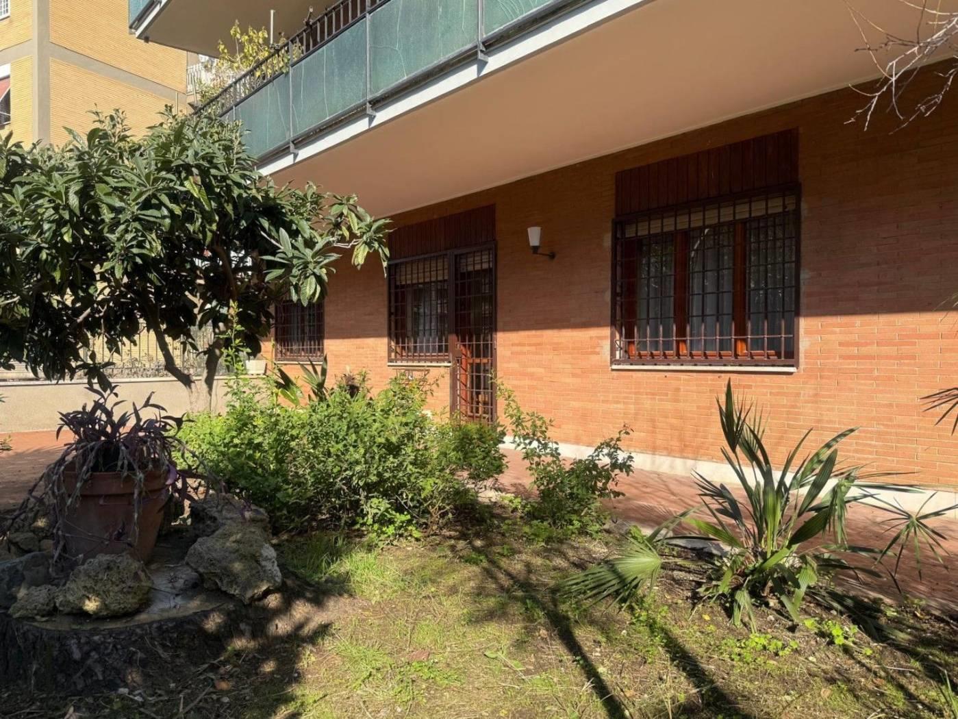 TALENTI - Nelle adiacenze della signorile Via Luigi Capuana e più precisamente in Via Dino Frescobaldi, in stabile in cortina recentemente ristrutturato, proponiamo la vendita di un quadrilocale dalla tripla esposizione. L'appartamento, ottimamente suddiviso in zona giorno e zona notte, è attualmente composto da ampio ingresso, salone doppio, disimpegno con cucina, sala da pranzo, corridoio con armadio a muro, due camere matrimoniali e bagno con finestra. La proprietà è circondata da un giardino, in parte terrazzato, di 220 mq c.a che rende la soluzione esclusiva. Completa la proprietà un box auto di 20 mq c.a raggiungibile con ascensore. L'immobile si presenta da ristrutturare e grazie all'ampia metratura è possibile ridistribuire gli spazi interni.