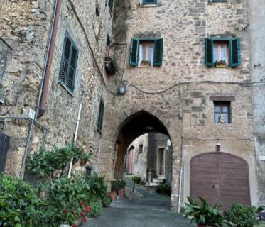 soluzione indipendente su due livelli nel centro storico di subiaco. zona giorno cucina con camino al piano terra e camera al primo piano.