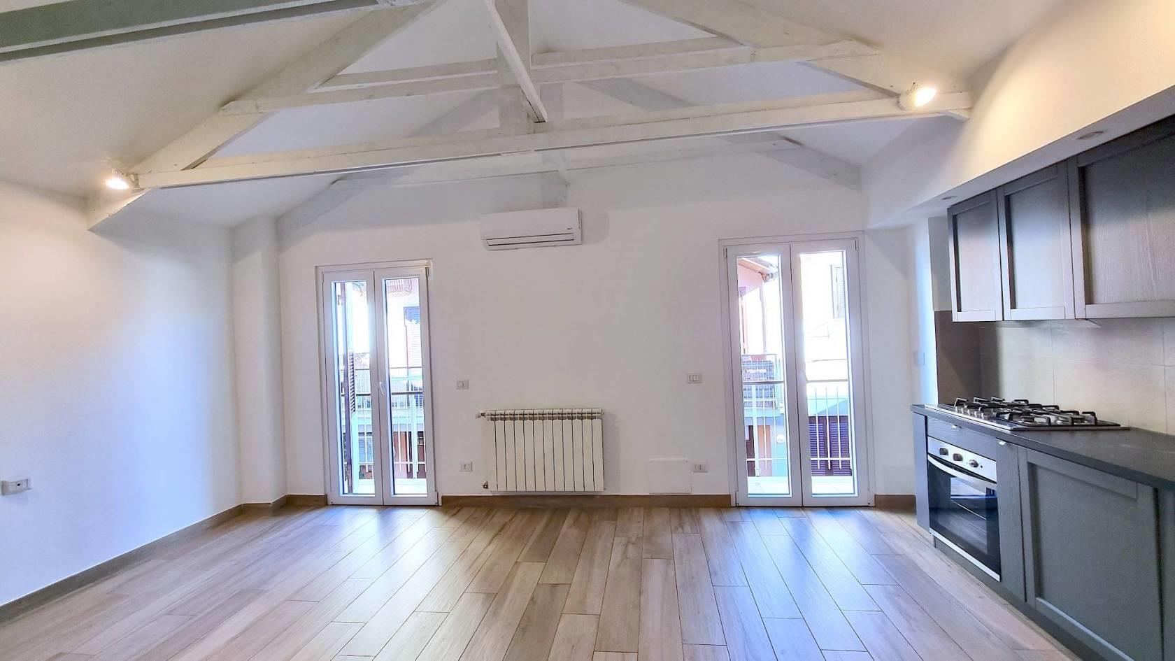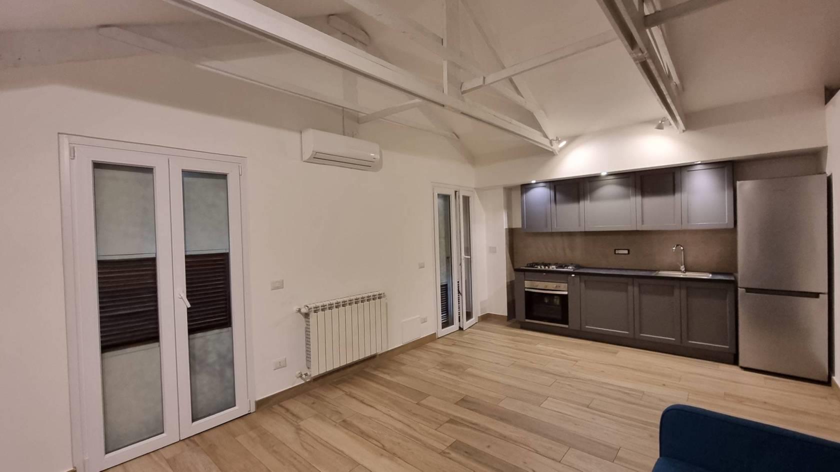 Nell’affascinante cornice rionale del Testaccio, zona molto ricercata per chi ama la tradizione romana e l’abitare contemporaneo, tra edifici post-industriali riqualificati e famose opere di street art, in Via del Porto Fluviale, in zona vicina a tutti i servizi, come scuole, supermercati, negozi di vario genere, ristoranti e ben collegata con le più importanti arterie viarie della città ed a pochi minuti dalla stazione Ostiense e dalla linea metropolitana B “PIRAMIDE”, proponiamo in LOCAZIONE splendido bilocale, totalmente ristrutturato, posto al secondo ed ultimo piano. L’immobile di circa 55 mq è composto di ingresso, camera da letto, ripostiglio, bagno con doccia, ampio soggiorno con angolo cottura e balcone. Gli ambienti, di recente ristrutturazione con layout contemporaneo, sono caratterizzati da un sottotetto con travi a vista, bianche, a due falde inclinate, in grado di evocare un’atmosfera suggestiva, calda, molto luminosa e piacere di vivibilità. Completano la dotazione dell’immobile l’arredo come da foto, la cucina completa di elettrodomestici e lavastoviglie, infissi di ultima generazione con taglio termico e vetri basso emissivo, riscaldamento autonomo, condizionatori con pompa di calore e sistema split system per il riscaldamento e raffrescamento degli ambienti.