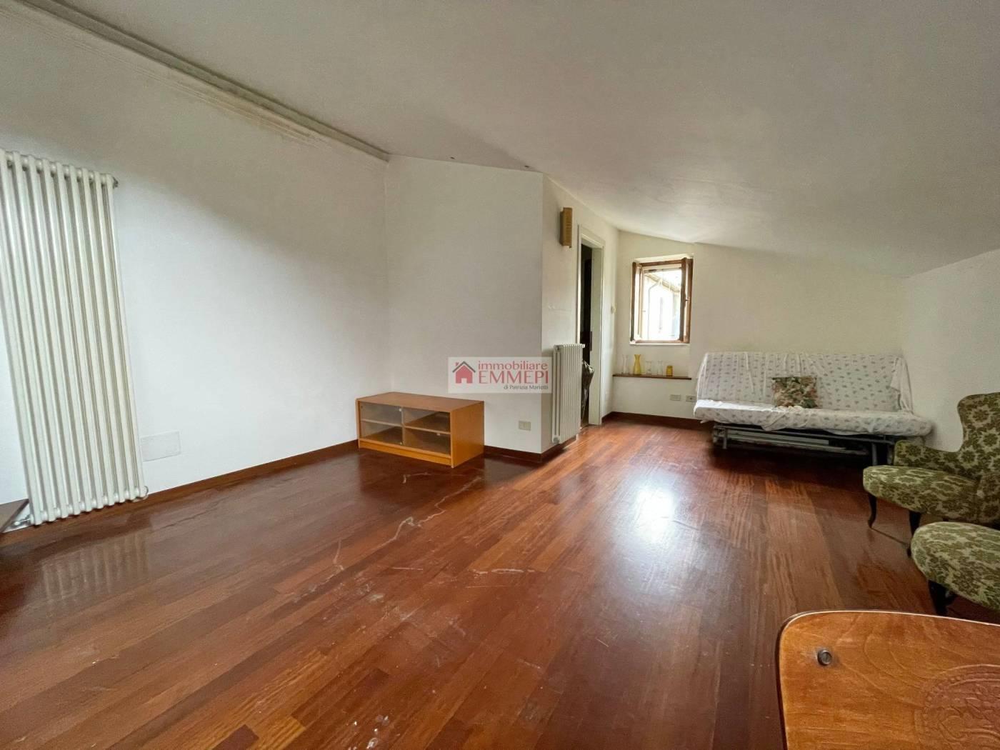 L’abitazione si sviluppa su due livelli: al primo piano troviamo un luminoso soggiorno-pranzo con angolo cottura, arricchito da camino e bagno di servizio; al secondo piano è presente una spaziosa camera da letto con bagno completo.