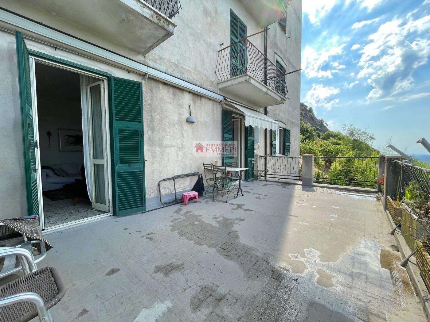 - Soggiorno con angolo cottura e accesso diretto a una terrazza di circa 20 mq, dotata di tendaggi;