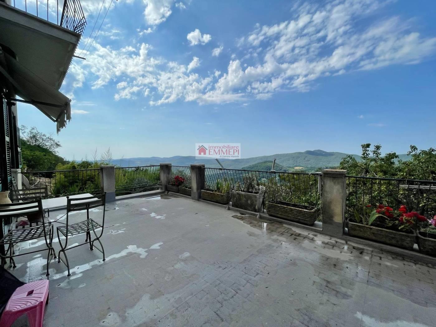 La proprietà gode di una vista panoramica mozzafiato sulla vallata sottostante, che regala un’atmosfera di quiete e bellezza naturale.