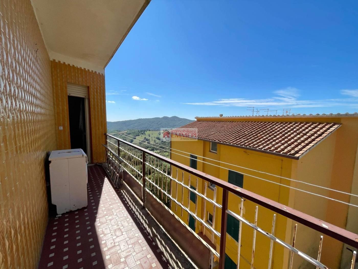 Il riscaldamento è garantito da una stufa a pellet ad aria, mentre gli infissi in alluminio con vetrocamera assicurano un buon isolamento. Tutti gli ambienti, ad eccezione del bagno, hanno accesso diretto al balcone, rendendo l’abitazione particolarmente ariosa e luminosa.