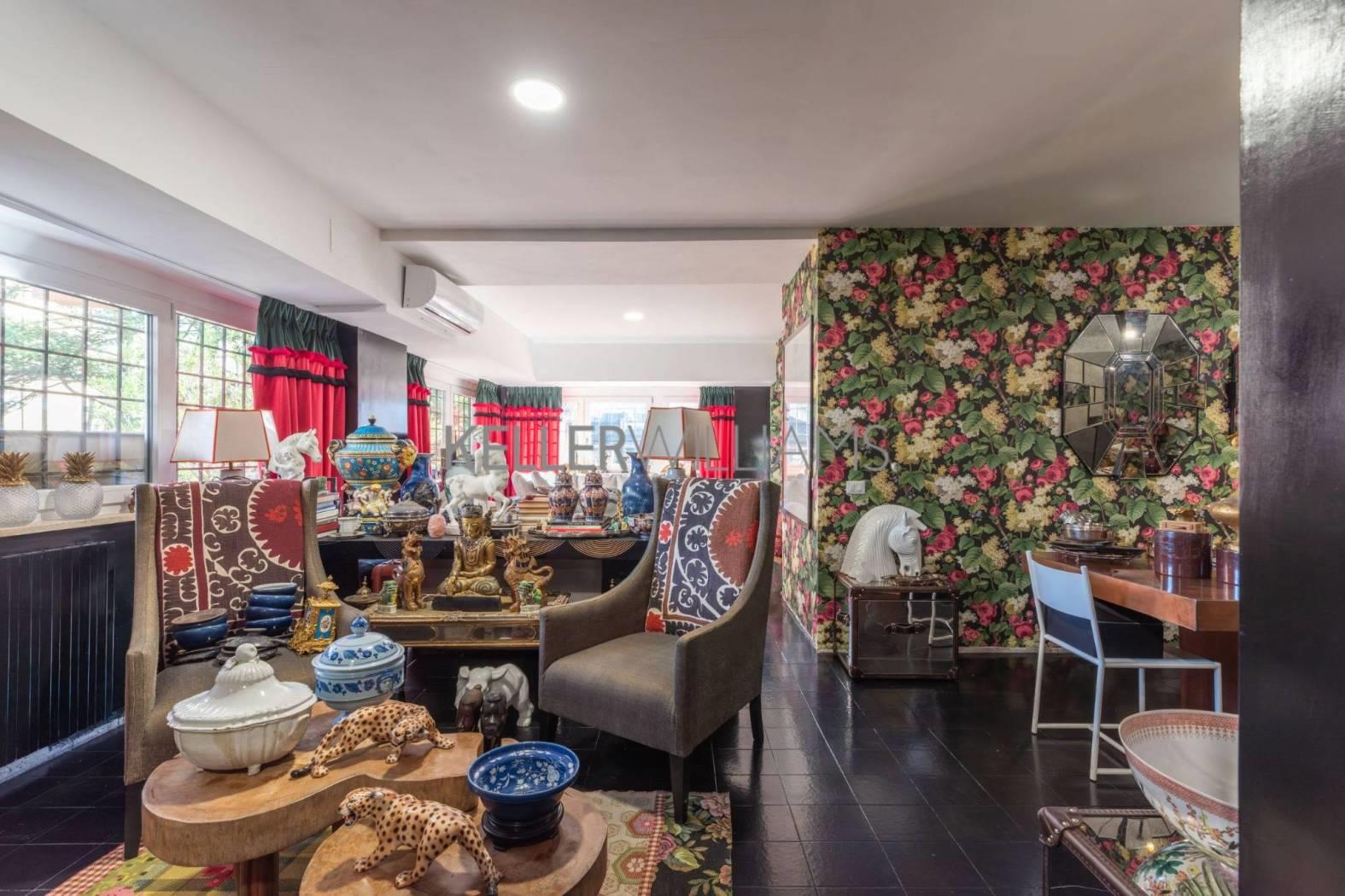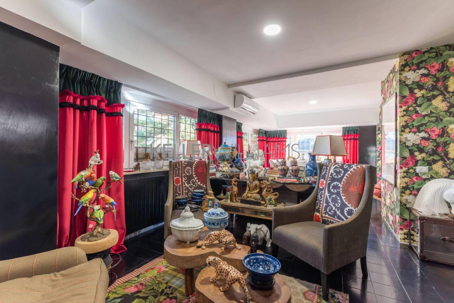 La zona giorno si sviluppa in modo fluido, offrendo aree dedicate al living e alla lettura, in un’atmosfera calda ed elegante.