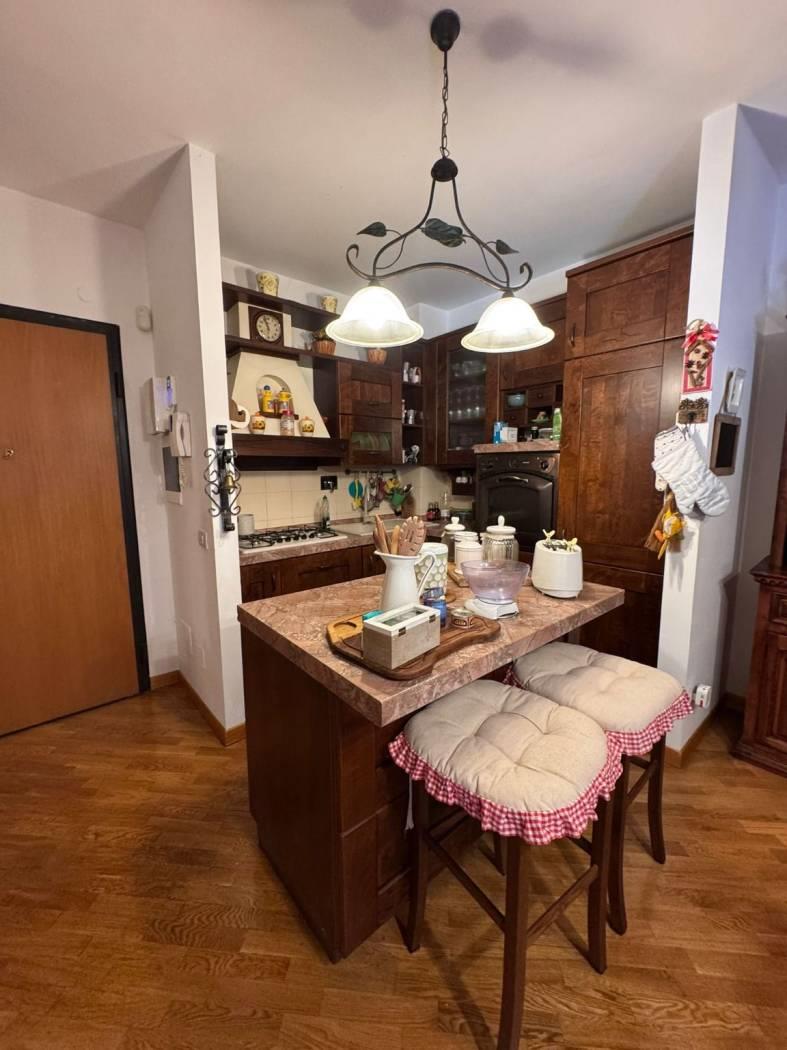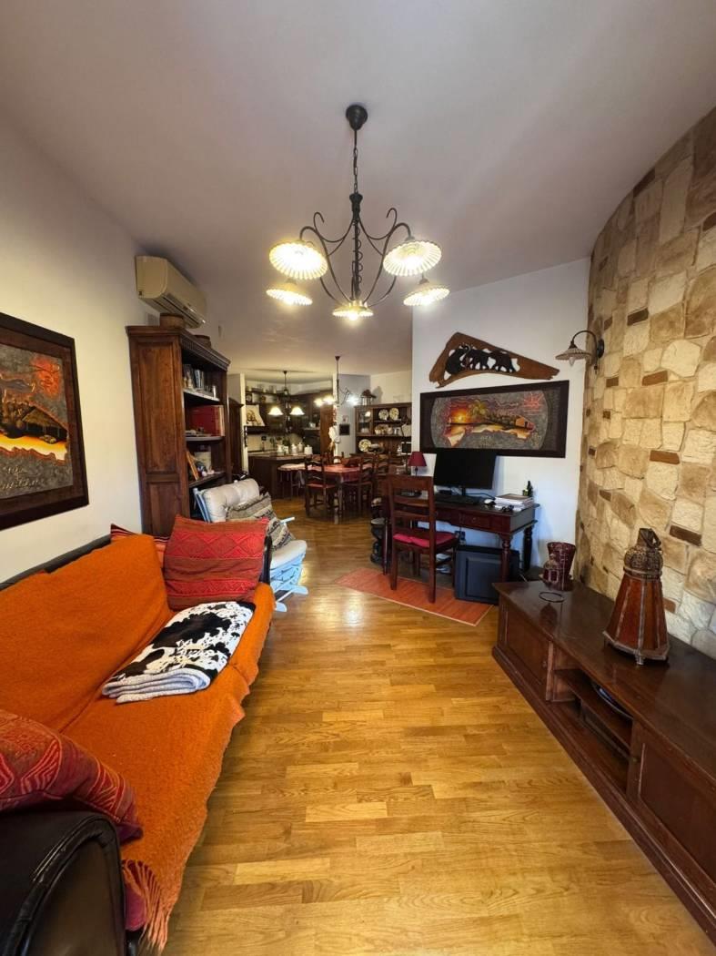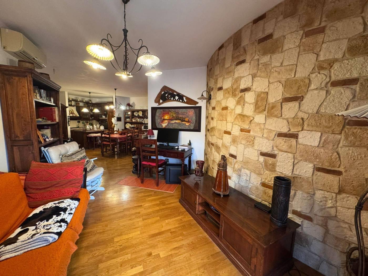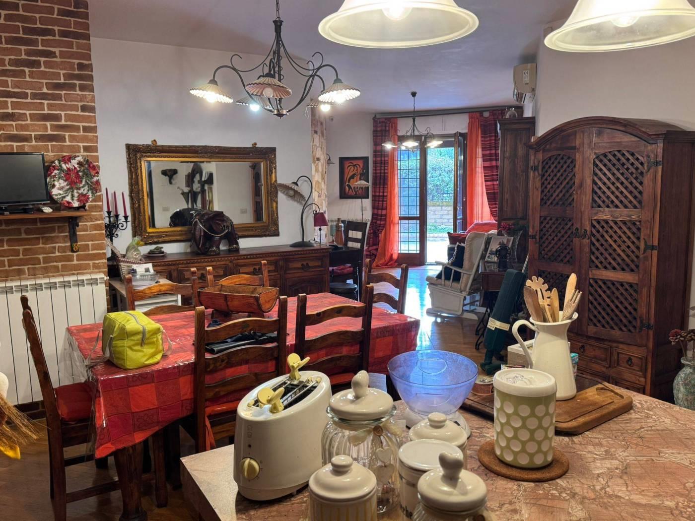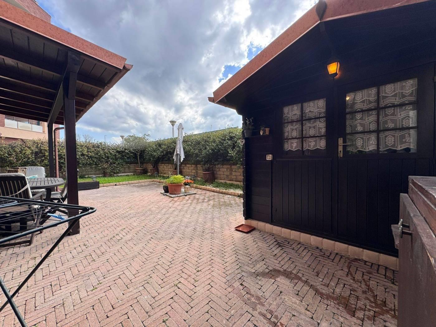 Internamente l’appartamento è composto da ampio salone con angolo cottura e accesso diretto al giardino, due camere di cui una con bagno privato, secondo bagno con doccia.