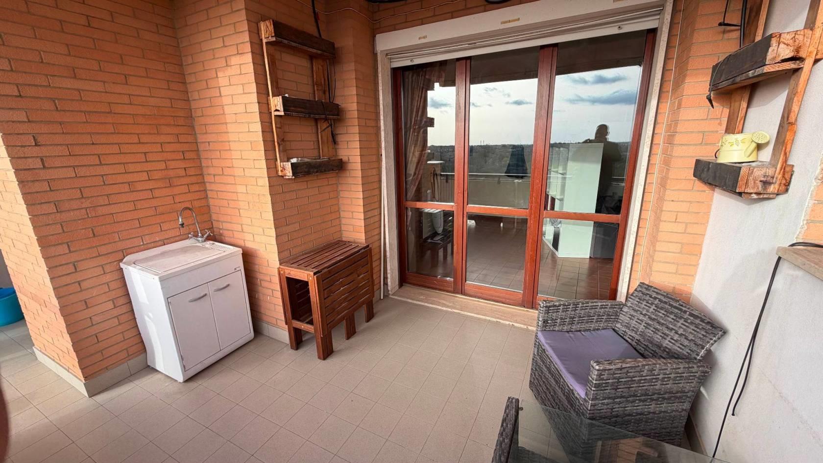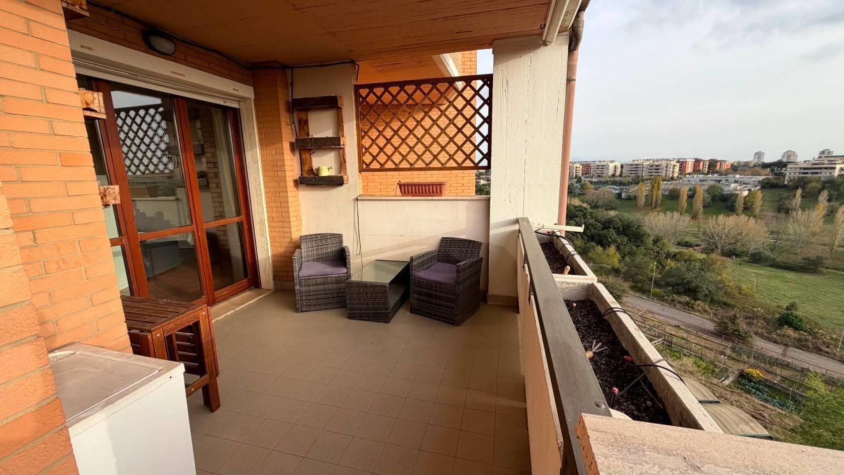 vendiamo un appartamento in Roma in zona Torresina e più precisamente in Viale Indro Montanelli a pochi passi dal Centro Commerciale Torresina in stabile in cortina proponiamo un quarto piano con affaccio aperto nel verde con esposizione a sud composto da ingresso soggiorno cucina abitabile 2 camere da letto bagno balcone e terrazzino con box auto di circa 18 mq con accesso direttamente alla palazzina. L'immobile è ristrutturato e viene lasciato completamente arredato. Immobile già affrancato. Euro 279.000