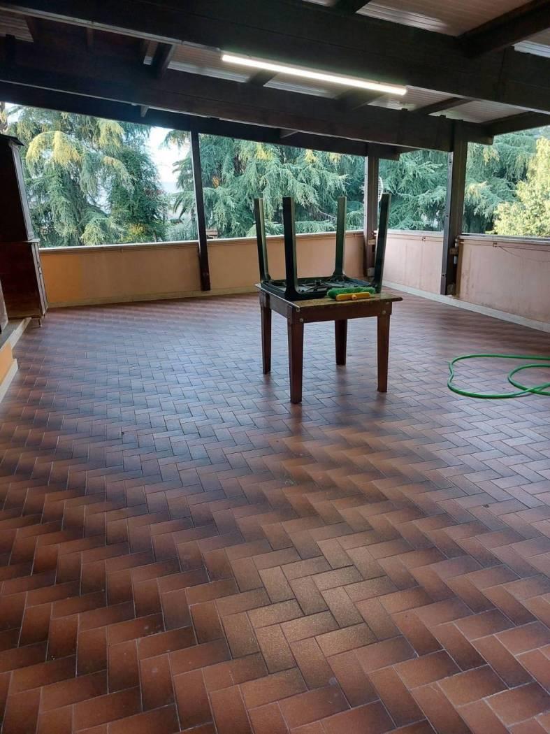 Completa l'immobile una bellissima terrazza coperta con affaccio nel verde dove poter pranzare , cenare o lavorare anche quando il tempo non è dei migliori.
