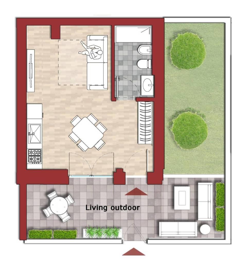 TORRINO MEZZOCAMMINO - VIA LUCCHETTI ROSSI - Appartamento nuova costruzione composto da soggiorno/letto con angolo cottura, servizio, giardino mattonato angolare 35mq e posto auto. Rifiniture di altissimo pregio con riscaldamento e raffrescamento a pavimento, aria condizionata canalizzata, infissi in legno e triplo vetro. CLASSE ENERGETICA A4. PRONTA CONSEGNA. Euro 200.000
