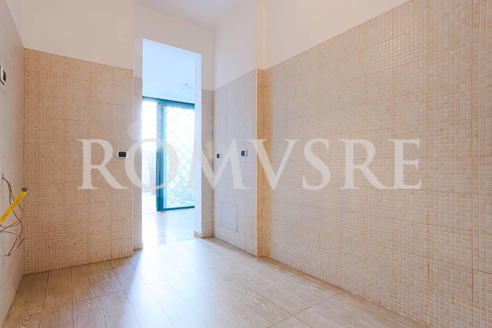 partamento in vendita a Roma, Torrino nord in Viale Della Grande Muraglia, adiacente tutti i servizi, le scuole, e il Bus per la Metro B, ROMVS RE propone un immobile in ottimo stato posto al piano Terra di 78 mq commerciali con accesso indipendente e condominiale, e composto da: Soggiorno a vista, cucina-tinello, disimpegno, 2 camere, di cui la padronale di 13 mq, la seconda camera di 9 mq ca, con veranda, bagno con doccia e finestra, tutti i locali hanno accesso diretto al giardino privato di 100 mq di cui una parte è pavimentata e l’altra è a prato con alberi, una cantina di 7mq e un posto auto coperto di 19 mq completano la proprietà.