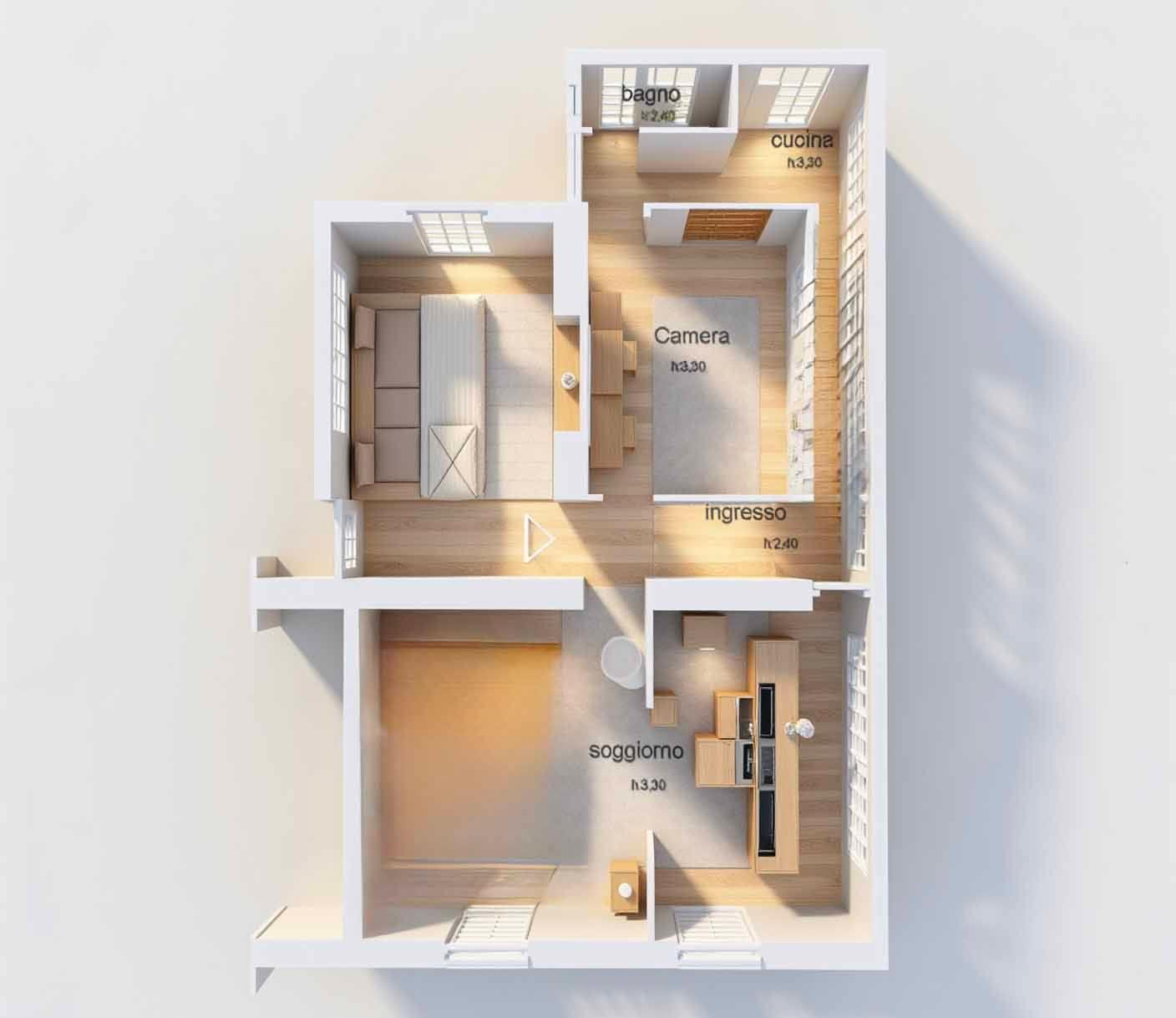 Grazie alla planimetria funzionale, l’appartamento si presta a una completa rivisitazione degli ambienti, rendendolo ideale sia come abitazione principale sia come soluzione di investimento.