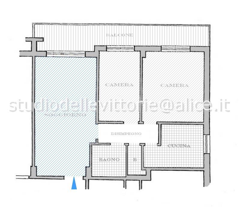 L'appartamento è sito al sesto piano ed è composto da Soggiorno, 2 Camere, Cucina arredata, 2 bagni ed un ampio e gradevole balcone.