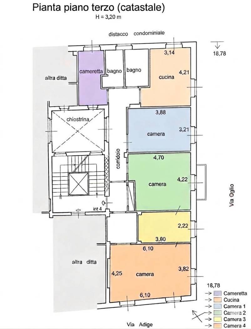 L'immobile è composto da ingresso, ampio soggiorno con tre grandi finestre, sala da pranzo, disimpegno, due ampie camere (di cui una con balconcino) con armadi a muro su misura, cameretta/studio, cucina arredata abitabile e doppi servizi.