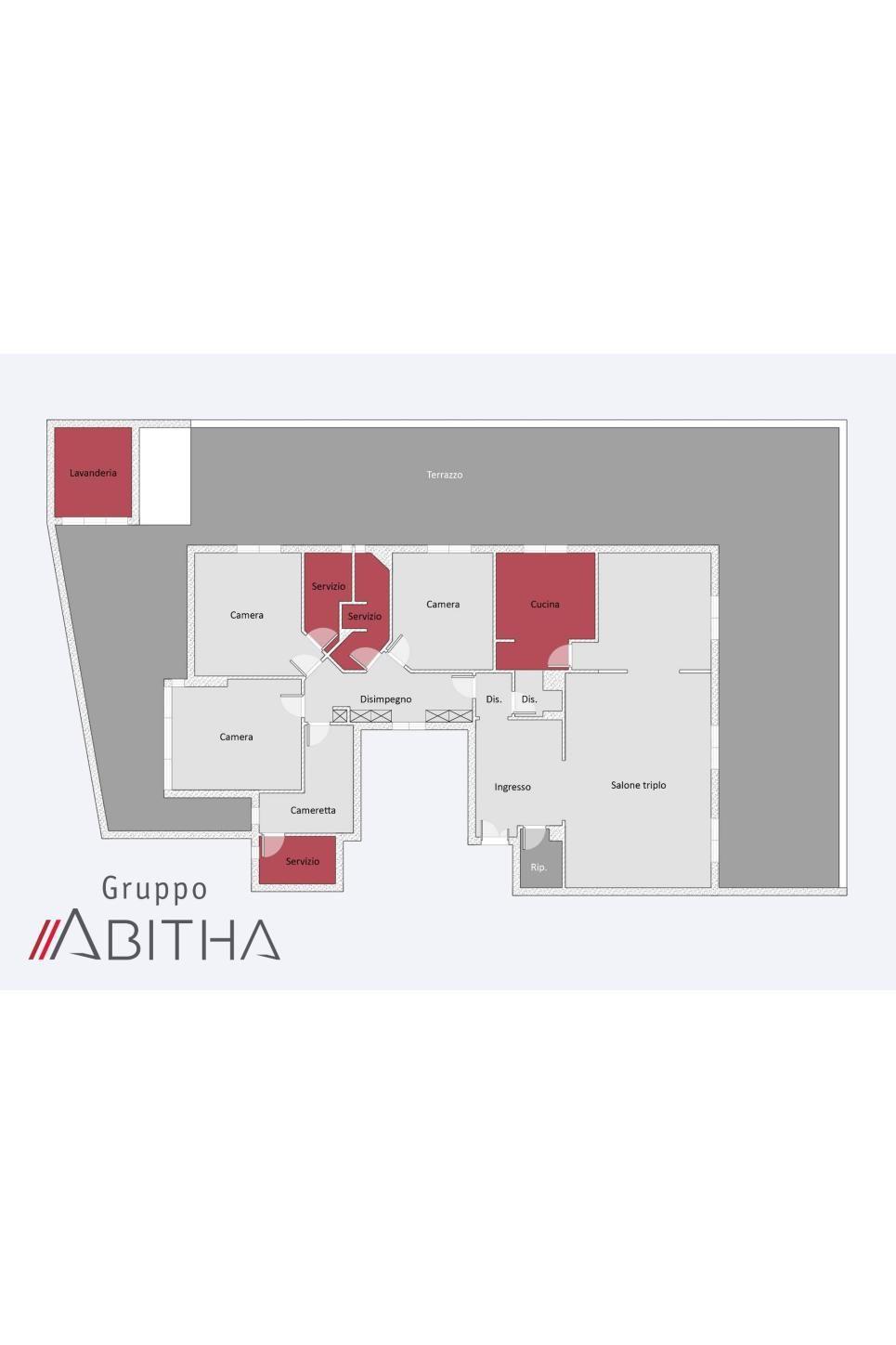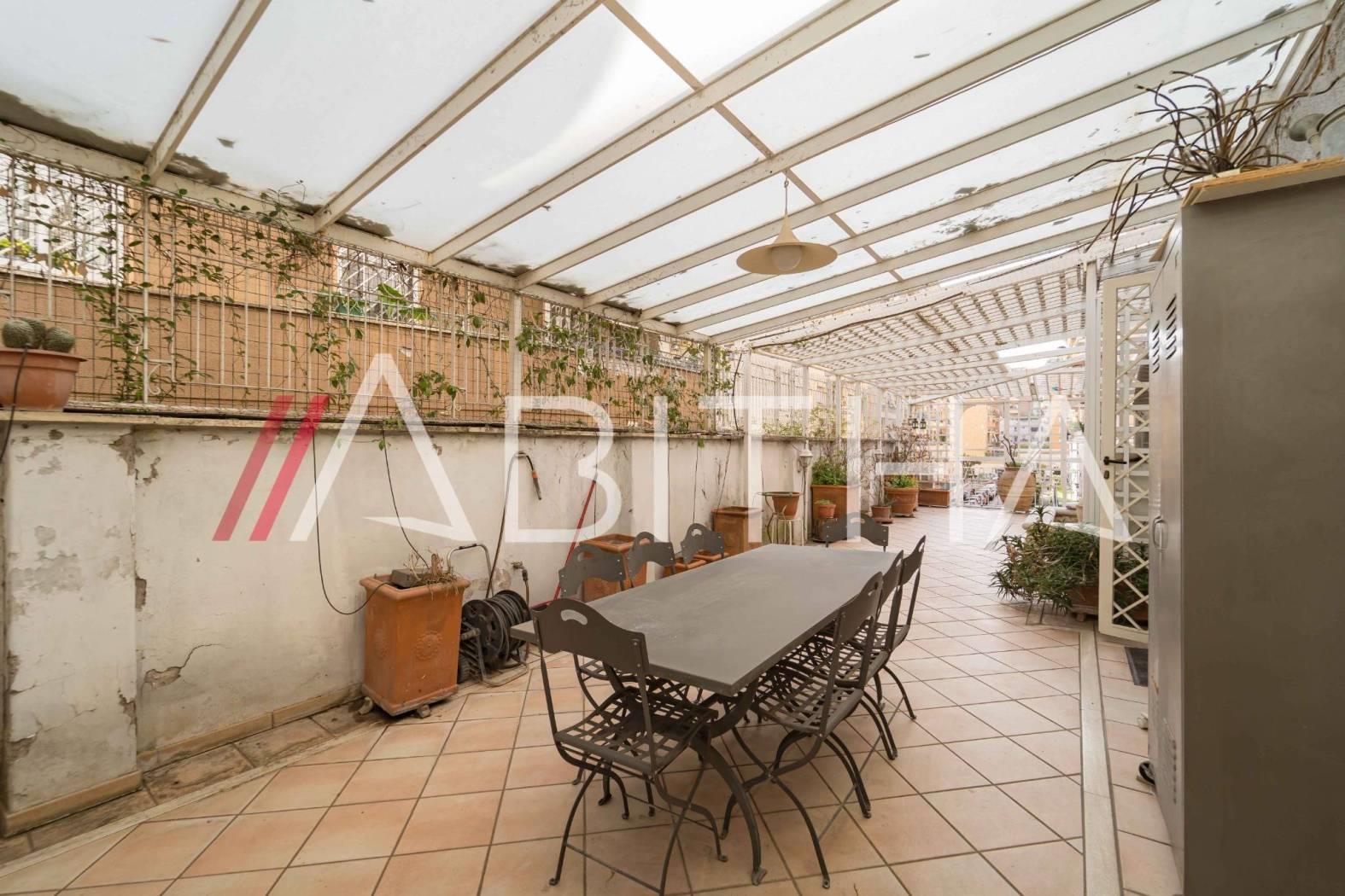 L'appartamento godi di affacci esterni su tre lati e un ulteriore affaccio interno e si trova nel suo complesso in ottime condizioni di manutenzione. Elegante parquet di rovere in tutti gli ambienti, fatta eccezione per le zone di servizio con pavimentazione in ceramica, armadiature a muro, soppalchi, condizionatori, infissi in doppio vetro con inferriate, predisposizione impianto antifurto, impianto di impianto di irrigazione automatica su tutto il terrazzo. I due servizi principali sono stati completamente rinnovati e arredati soltanto qualche mese fa.