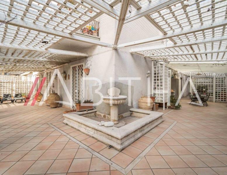 Il terrazzo costituisce uno spazio esterno di natura eccezionale per la sua estensione di circa 160 metri quadrati, è accessibile da tutti gli ambienti della casa e presenta esposizione sud/est nella parte maggiormente godibile. E’ attrezzato con grigliati di copertura, fontana angolare e comodo spazio lavanderia coperto, di circa 8 metri quadrati, dotato di acqua e riscaldamento.