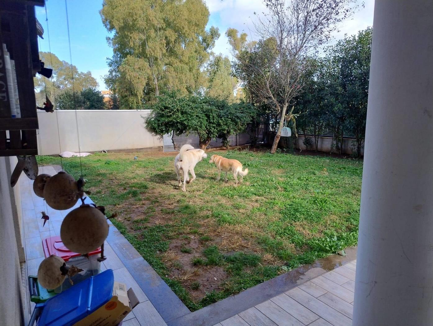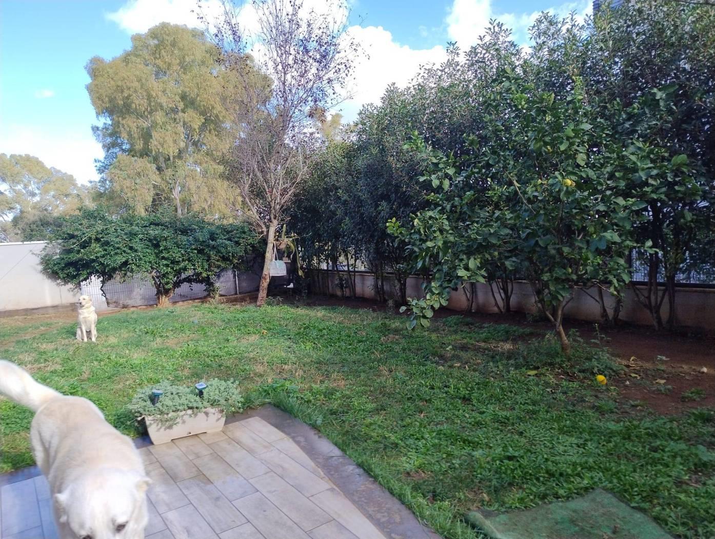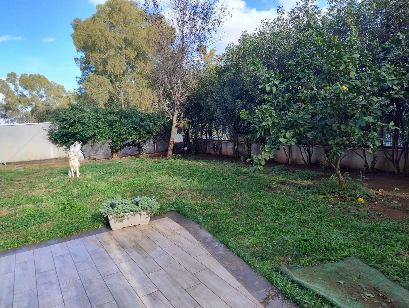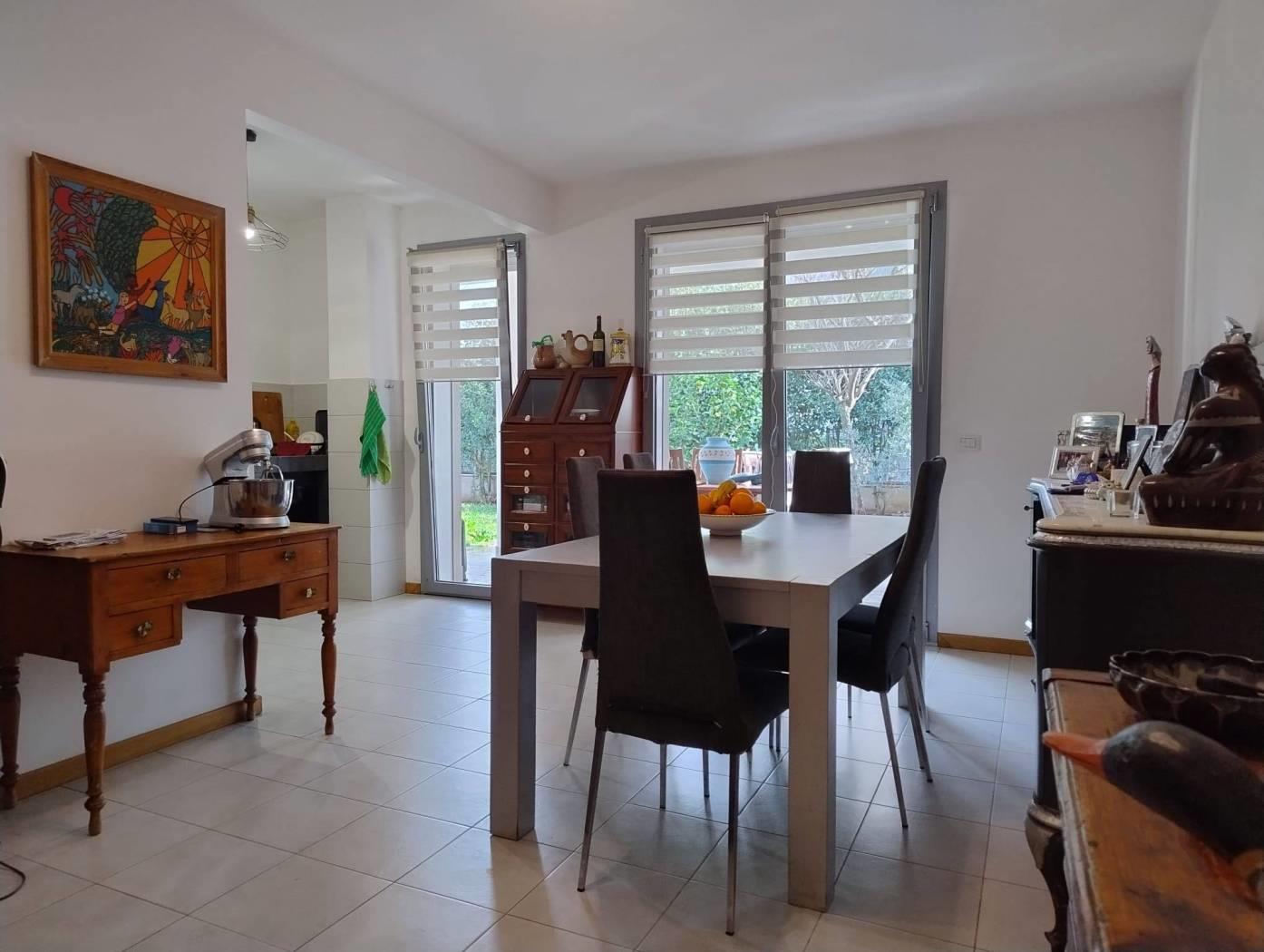 Tutti gli ambienti della zona giorno e della zona notte affacciano sul grande giardino angolare, in parte pavimentato e in parte verde.