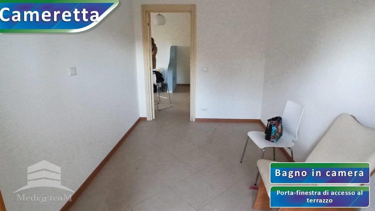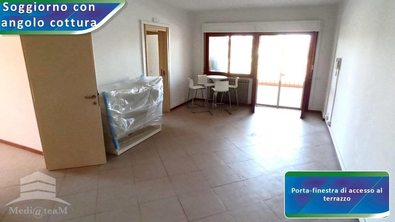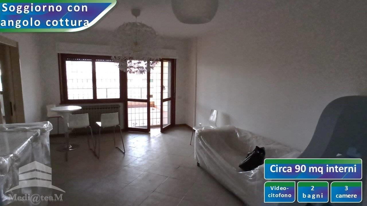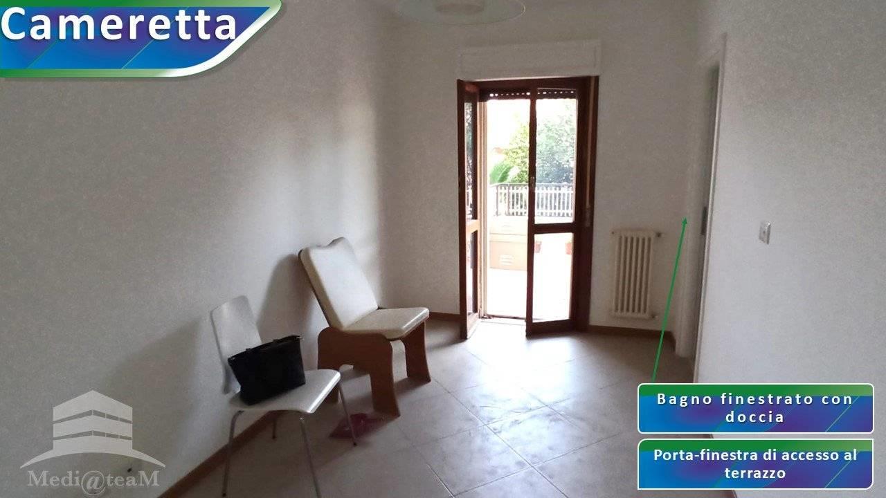 Servizi Immobiliari MediateaM propone in vendita un appartamento posto al 1° piano situato in una palazzina in ottime condizioni le cui facciate sono state da poco restaurate. Il condominio è dotato di ascensore e ha come pertinenza un ampio giardino in parte pavimentato godibilissimo e riservato ai soli condomini. Situato in una delle vie principali molto ben servita con ottimi collegamenti ai mezzi pubblici ed ai negozi di prossimità. L’appartamento risulta essere molto luminoso e panoramico, con ampi distacchi dagli altri fabbricati circostanti. Al piano si compone di: salone con angolo cottura ed accesso all' ampio terrazzo panoramico, un’ampia camera da letto con tripla finestra sul terrazzo perimetrale, cameretta con porta finestra di accesso al terrazzo e bagno privato dotato di doccia e finestra, comodo disimpegno, una cameretta o studio con affaccio sul terrazzo e un secondo bagno dotato di doccia. L’appartamento risulta essere prontamente vivibile in quanto non presenta nessun segno di invecchiamento o manutenzione straordinaria da eseguire. Possibilità di verandare a vetri la loggia del terrazzo. Accessori: porte in legno chiaro, porte-finestre e finestre in legno-vetro, grate a tutte le finestre. Impianti tecnologici: riscaldamento autonomo, videocitofono e portoncino blindato. Le indicazioni riportate nel presente materiale pubblicitario devono essere considerate indicative e non hanno alcun contenuto contrattuale. I dati riportati nelle inserzioni provengono dall’Agenzia MediateaM Servizi Immobiliari. I dati riportati nelle inserzioni provengono dall’agenzia servizi immobiliari MediateaM. Disponiamo di book fotografici completi di tutti gli immobili in portfolio. E-mail: - mob. “Noi ci occupiamo di voi. ” CORDIALI SALUTI