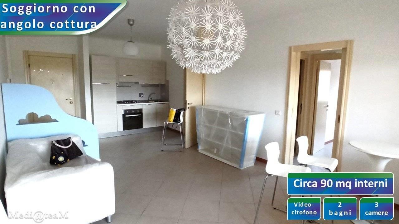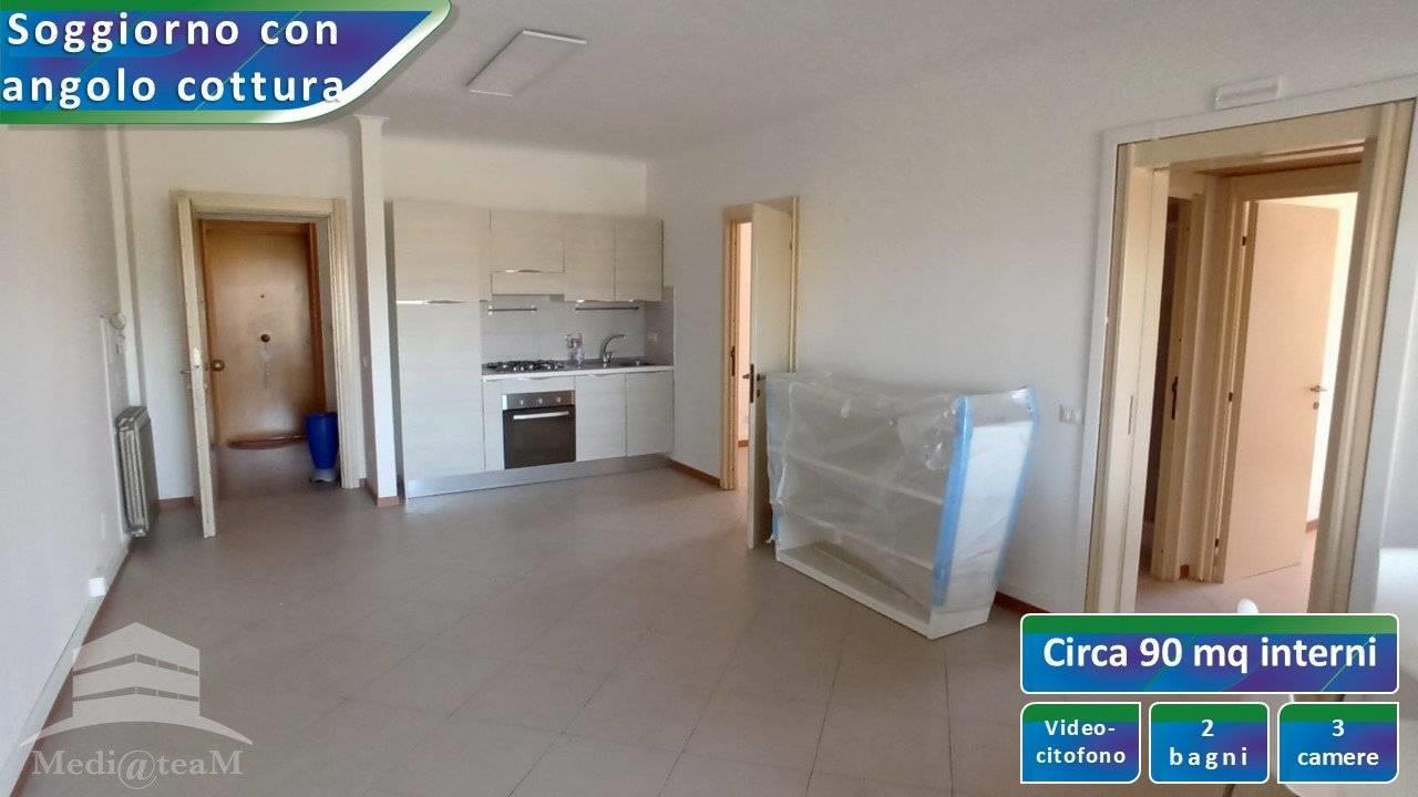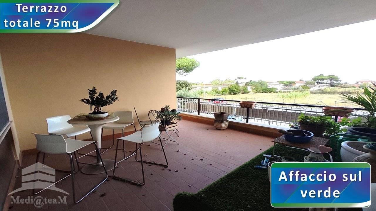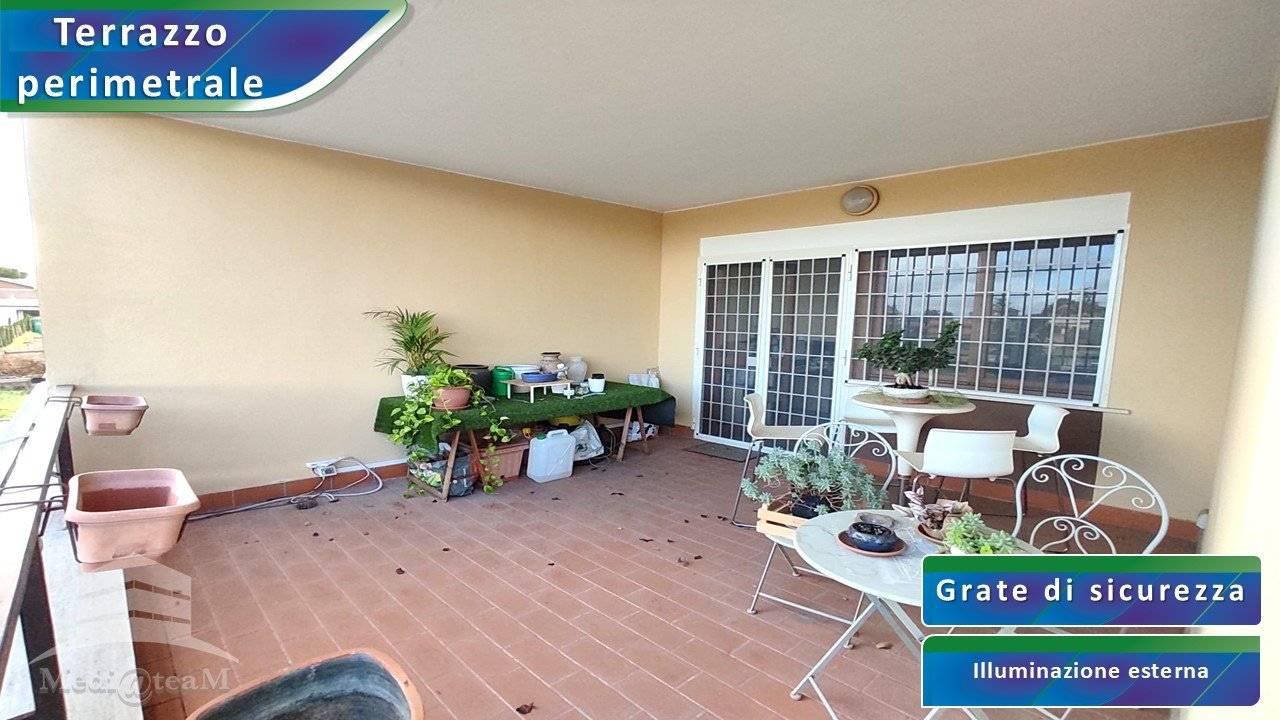 Servizi Immobiliari MediateaM propone in vendita un appartamento posto al 1° piano situato in una palazzina in ottime condizioni le cui facciate sono state da poco restaurate. Il condominio è dotato di ascensore e ha come pertinenza un ampio giardino in parte pavimentato godibilissimo e riservato ai soli condomini. Situato in una delle vie principali molto ben servita con ottimi collegamenti ai mezzi pubblici ed ai negozi di prossimità. L’appartamento risulta essere molto luminoso e panoramico, con ampi distacchi dagli altri fabbricati circostanti. Al piano si compone di: salone con angolo cottura ed accesso all' ampio terrazzo panoramico, un’ampia camera da letto con tripla finestra sul terrazzo perimetrale, cameretta con porta finestra di accesso al terrazzo e bagno privato dotato di doccia e finestra, comodo disimpegno, una cameretta o studio con affaccio sul terrazzo e un secondo bagno dotato di doccia. L’appartamento risulta essere prontamente vivibile in quanto non presenta nessun segno di invecchiamento o manutenzione straordinaria da eseguire. Possibilità di verandare a vetri la loggia del terrazzo. Accessori: porte in legno chiaro, porte-finestre e finestre in legno-vetro, grate a tutte le finestre. Impianti tecnologici: riscaldamento autonomo, videocitofono e portoncino blindato. Le indicazioni riportate nel presente materiale pubblicitario devono essere considerate indicative e non hanno alcun contenuto contrattuale. I dati riportati nelle inserzioni provengono dall’Agenzia MediateaM Servizi Immobiliari. I dati riportati nelle inserzioni provengono dall’agenzia servizi immobiliari MediateaM. Disponiamo di book fotografici completi di tutti gli immobili in portfolio. E-mail: - mob. “Noi ci occupiamo di voi. ” CORDIALI SALUTI