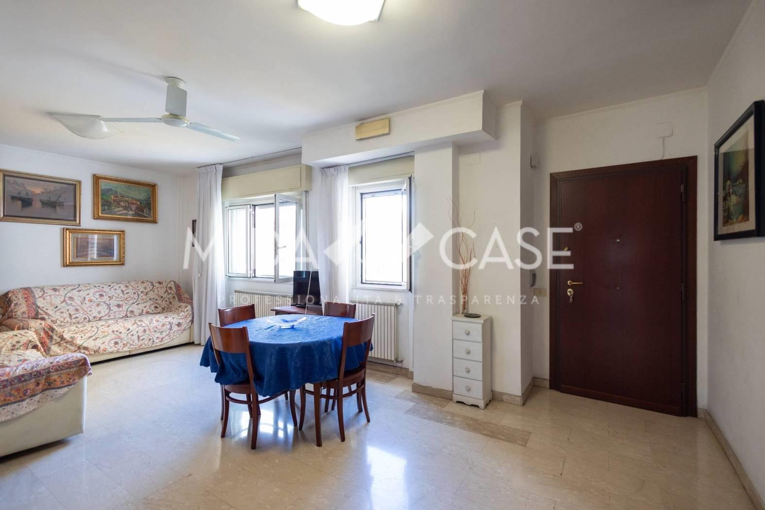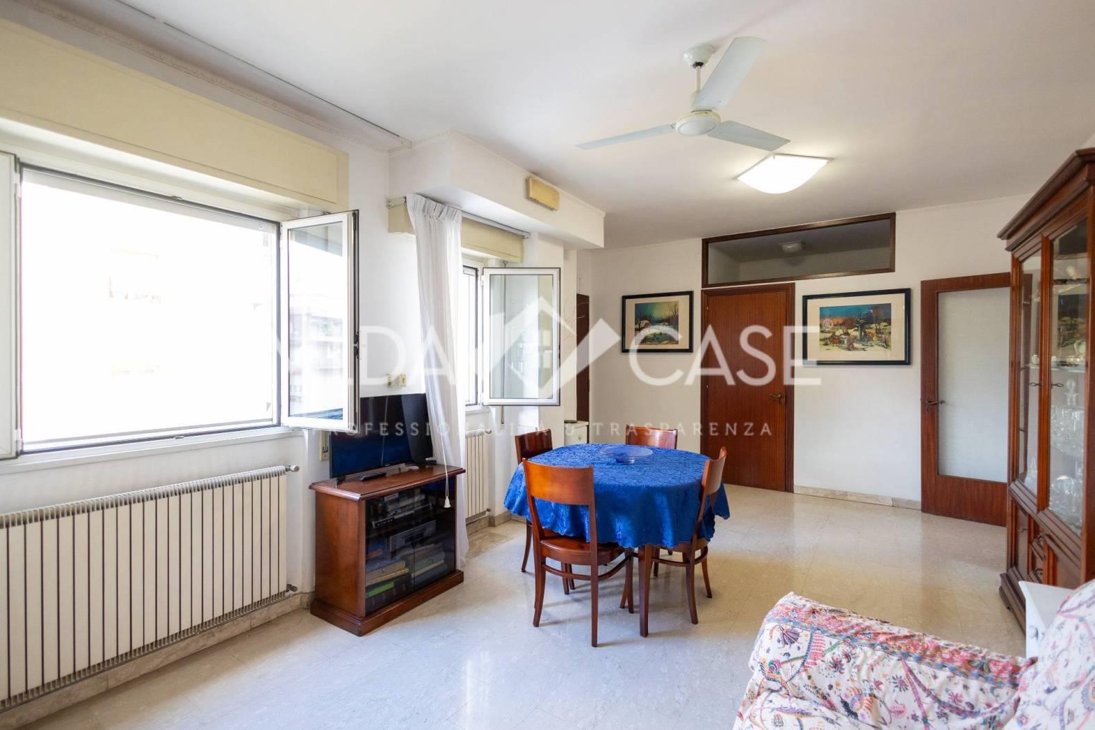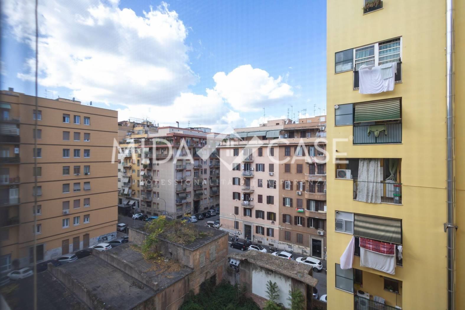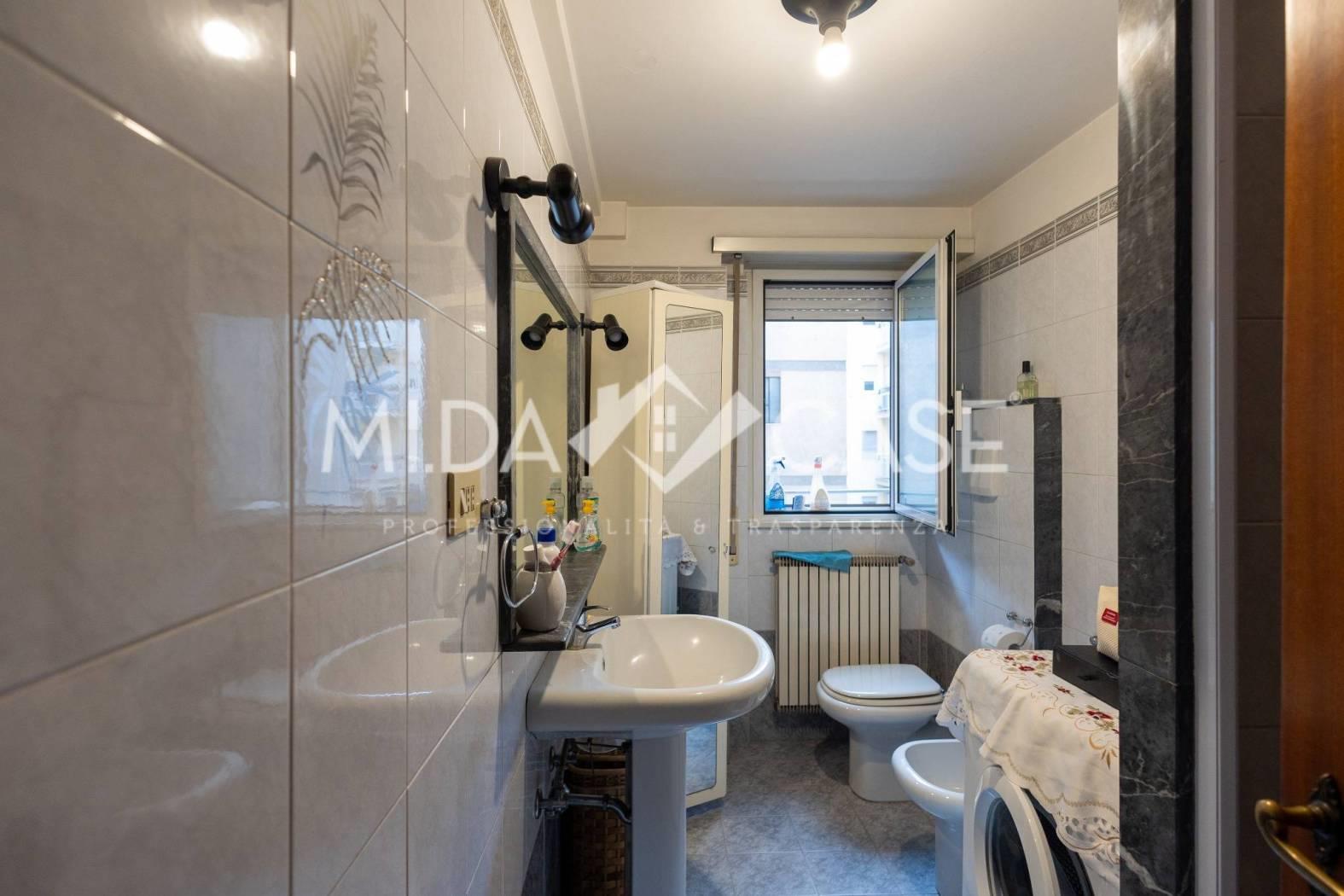Via di Portonaccio : La Mi.Da Case propone in vendita un ampio Trilocale Piano alto in una Palazzina in tinta, l'immobile è cosi composto : soggiorno a vista con due finestre che lo rendono estremamente luminoso, piccolo studiolo, corridoio con un ripostiglio, due camere da letto , doppi servizi di cui uno di servizio in camera da letto, una cucina abitabile adiacente ad un terrazzo perimetrale ampio e vivibile. L'immobile gode di una doppia esposizione che lo rende molto luminoso. Completa la proprietà un ampio box dal quale si può accedere direttamente dall'interno dello stabile ed una cantina di 6mq situata al piano terra.