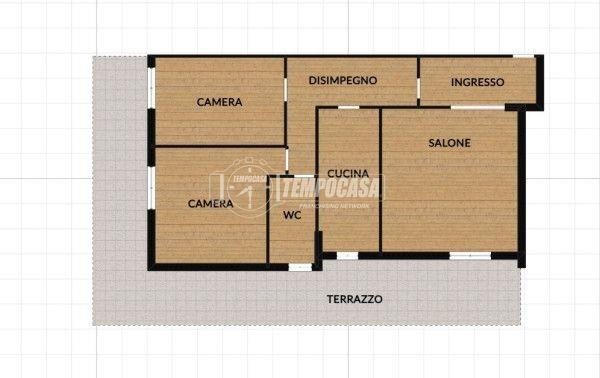 L'appartamento è composto da ingresso, salone luminoso, camera matrimoniale e cameretta, cucina abitabile con parquet e bagno finestrato.