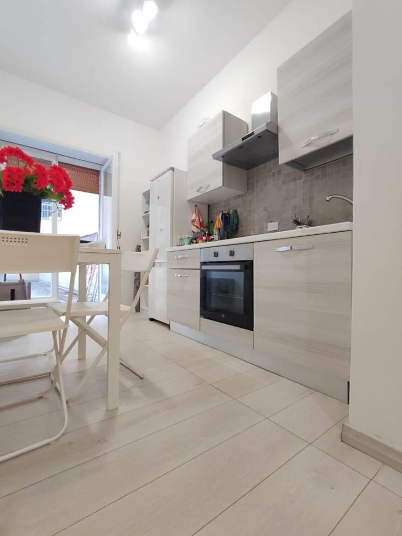 L'immobile è composto da: ingresso/living, cucina con accesso ad un terrazzo, tre camere da letto di cui con accesso ad atro terrazzo e cabina armadio, un bagno con doccia e finestra.