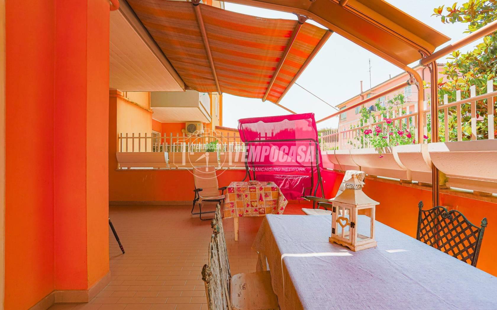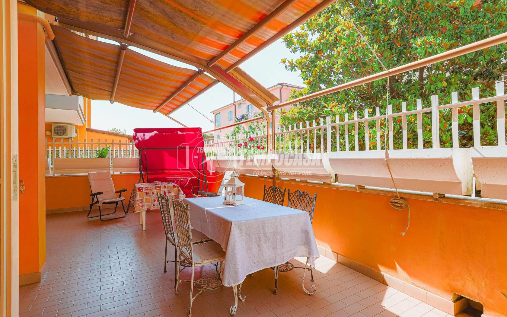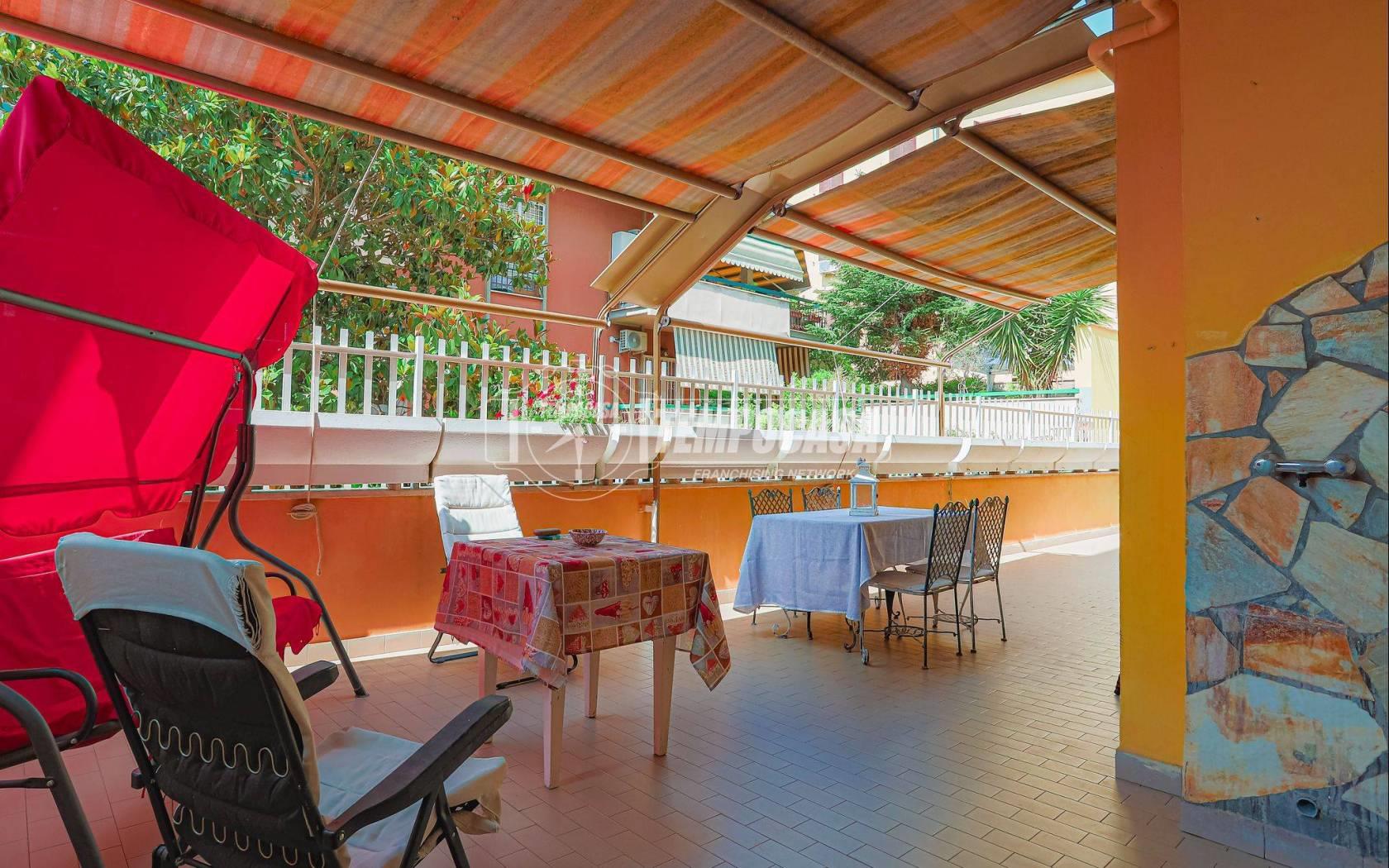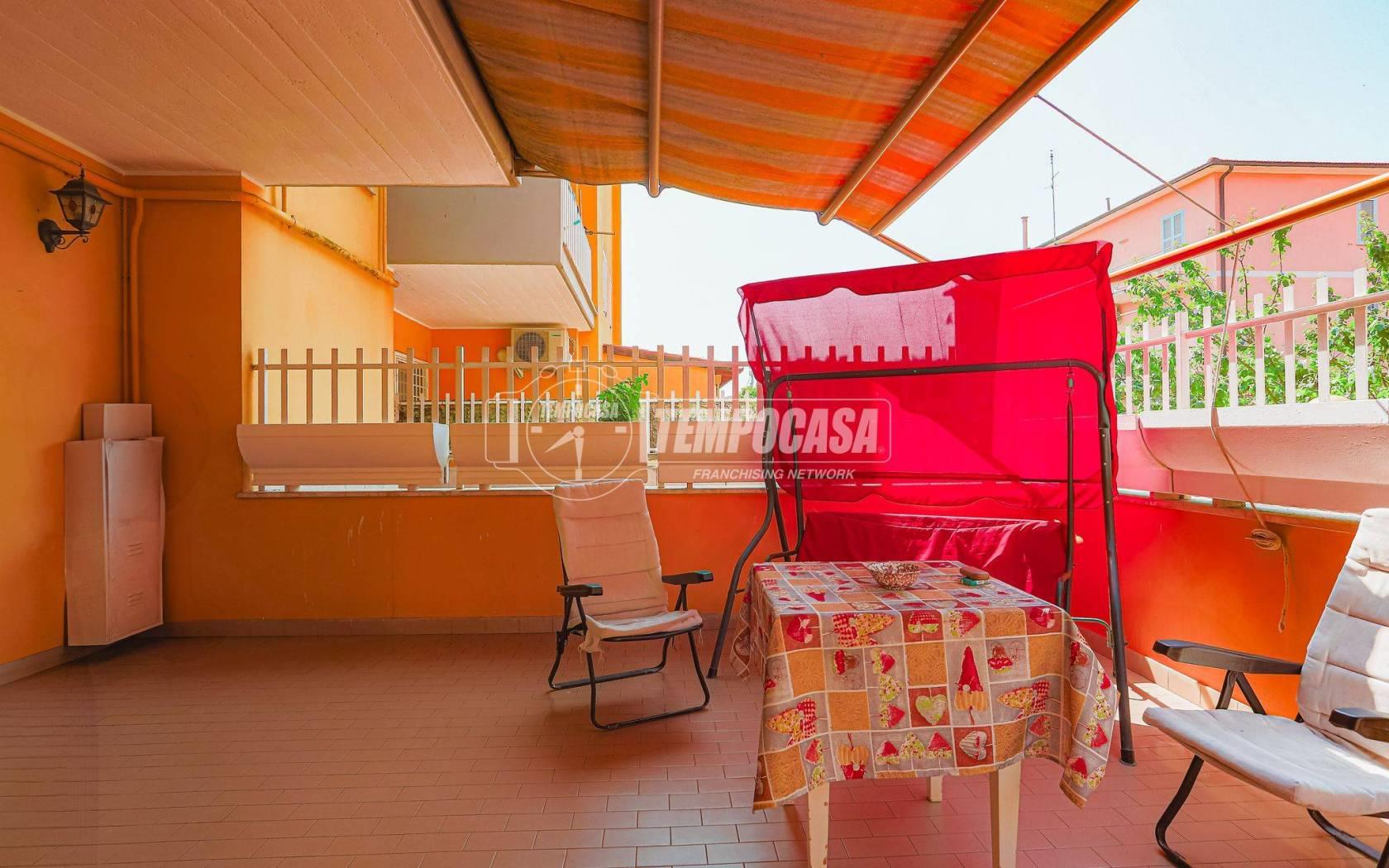 L’appartamento, che si sviluppa su una superficie di 87 mq circa, si apre su un luminoso salone con angolo cottura, da cui si accede, come da tutti gli ambienti della casa, a un ampio terrazzo di circa 100 mq: uno spazio esterno ideale per momenti di relax, cene all’aperto o per chi ama vivere la casa anche fuori dalle mura domestiche. La zona notte è composta da due camere da letto e due bagni, uno dei quali finestrato e l’altro cieco, ben distribuiti e funzionali per la vita quotidiana.
