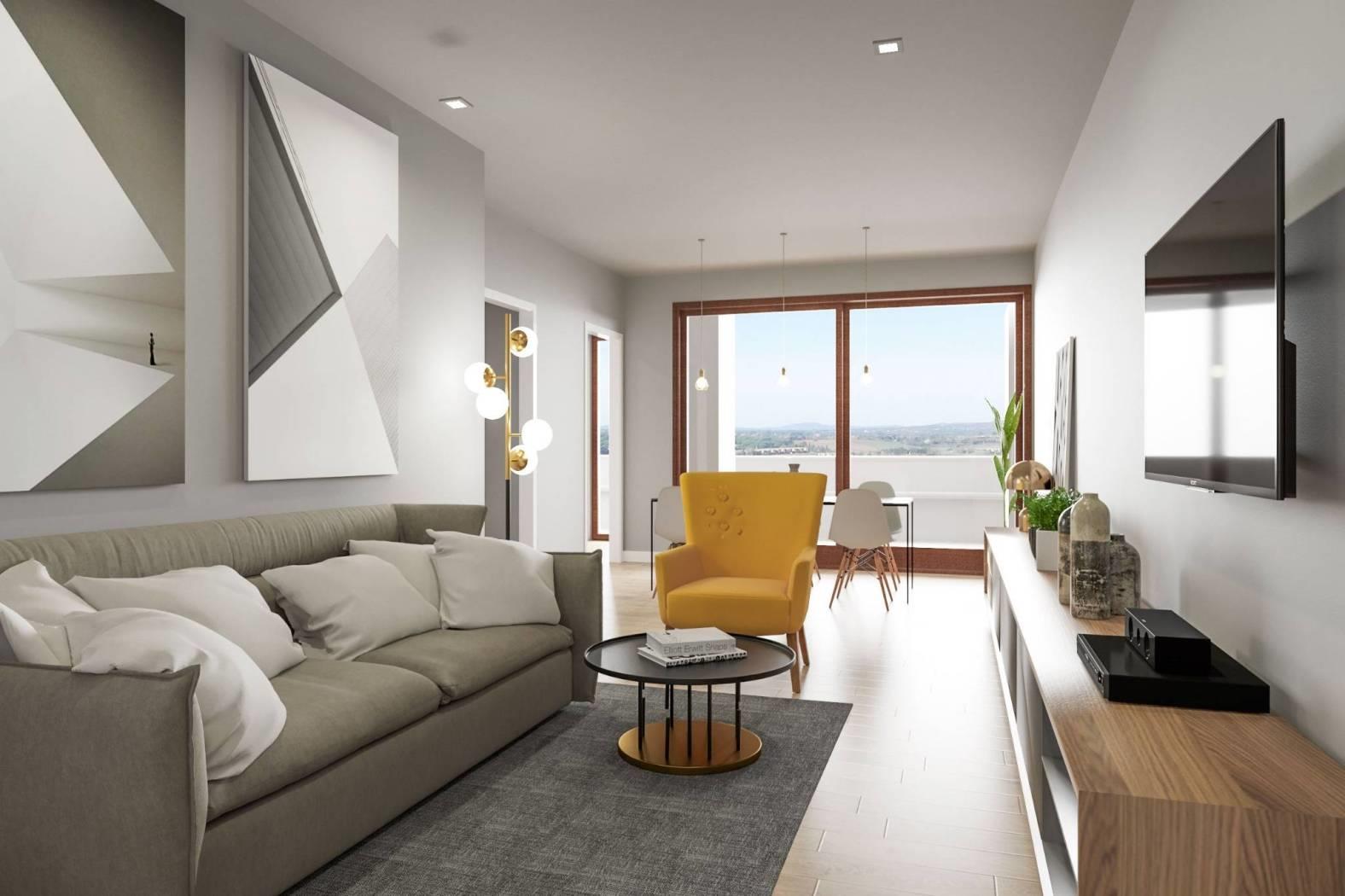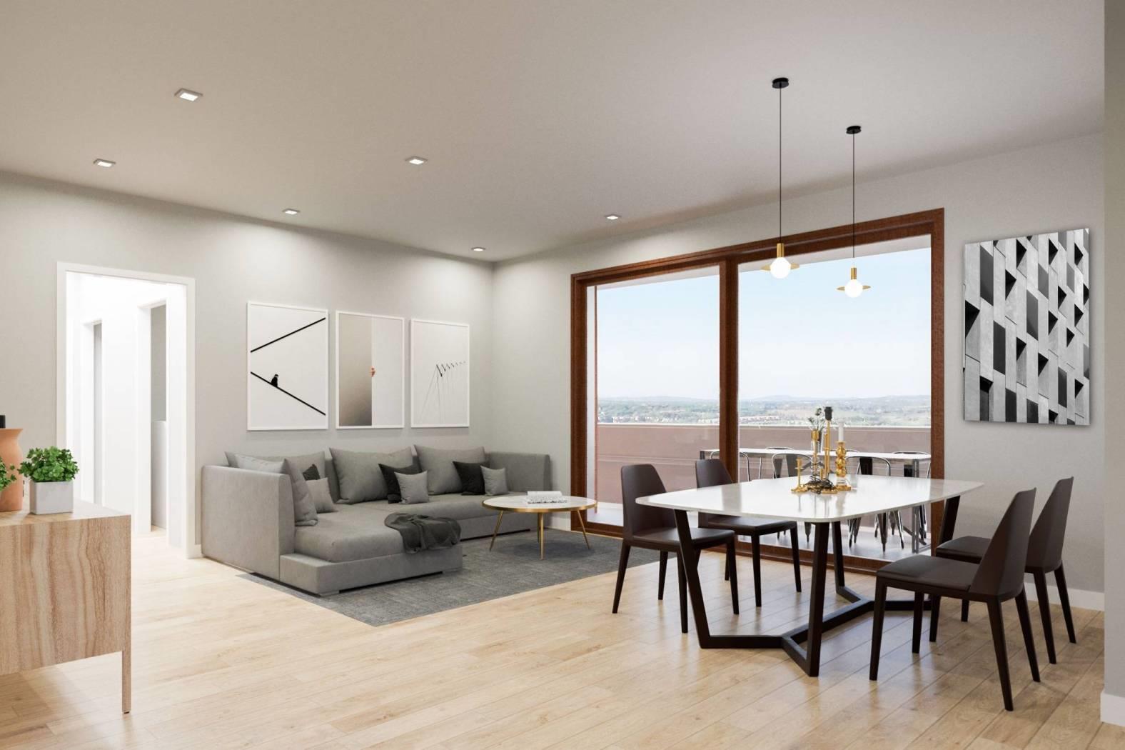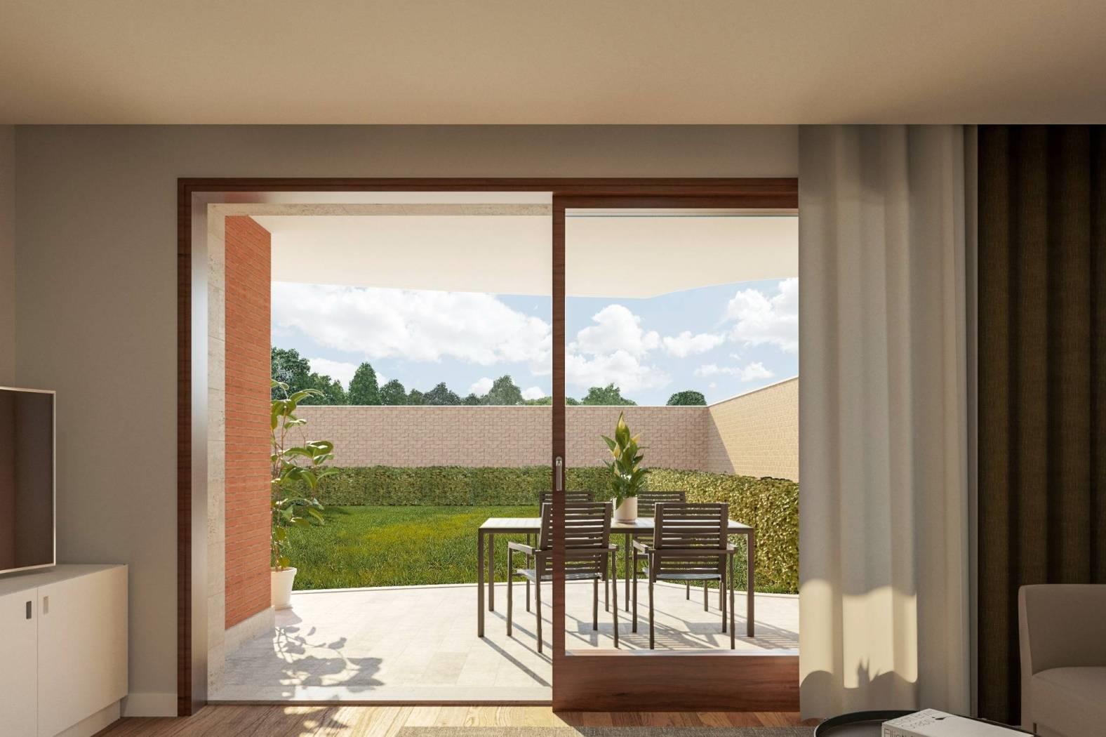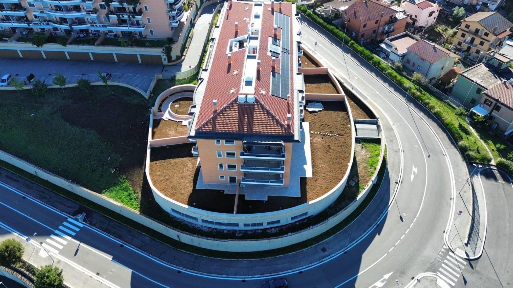 Rif: Z1-3-B02 - Nel Complesso Residenziale di Horti della Marcigliana proponiamo un appartamento al piano terra di una palazzina di tre composto da soggiorno con angolo cottura, 2 camere da letto, bagno, ampio giardino panoramico. Impianto di riscaldamento radiante a pavimento, split per l'aria condizionata caldo/freddo, infissi in legno con doppi vetri e serrande elettriche motorizzate, videocitofono a colori, predisposizione impianto antifurto,portoncino blindato. Pavimentazione della casa in Gres porcellanato. Possibilità di aggiungere un Box di 23,50 mq. Pronta consegna - edificio completato Agosto 2025