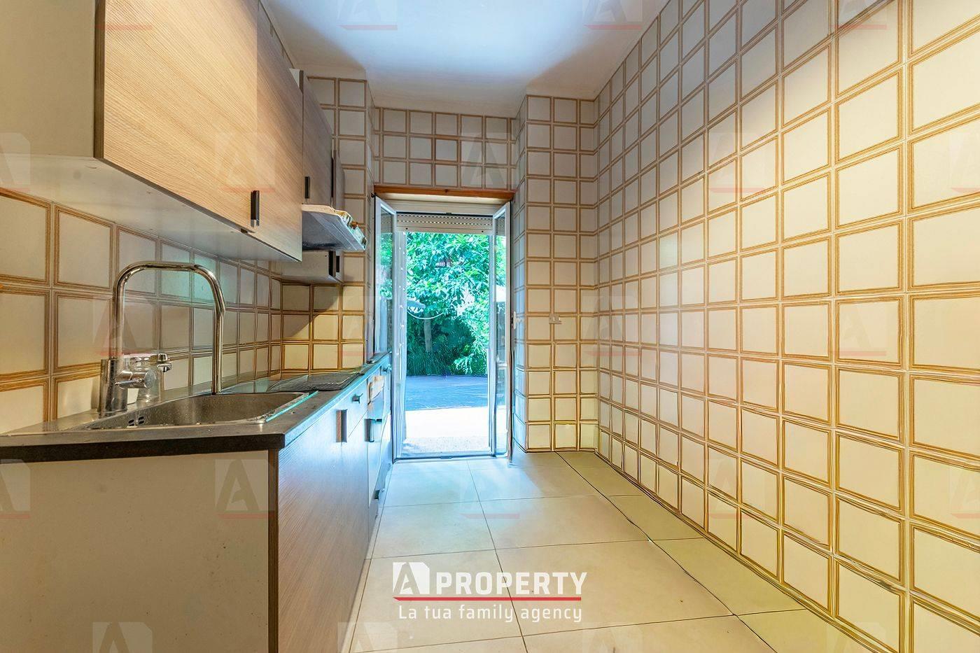 L’appartamento si trova al primo piano e accoglie con un salone ampio e luminoso, affacciato su un delizioso balcone terrazzato, ideale per colazioni all’aperto o un aperitivo al tramonto. La cucina è separata, comoda e funzionale, con accesso diretto a un vero gioiello: un giardino in terra piena di 150 mq, pianeggiante, riservato e pienamente vivibile, che si presta anche – per chi lo desidera – alla realizzazione di una piscina privata.