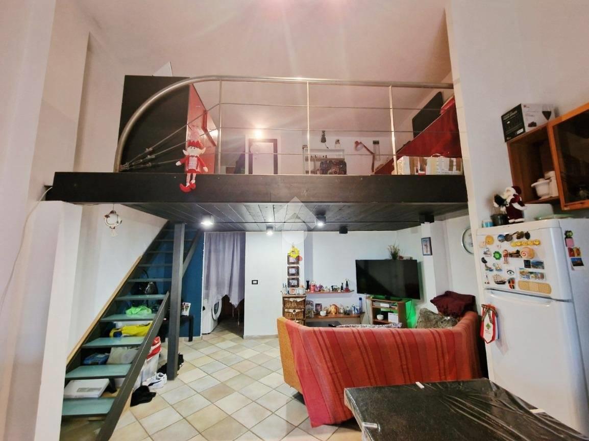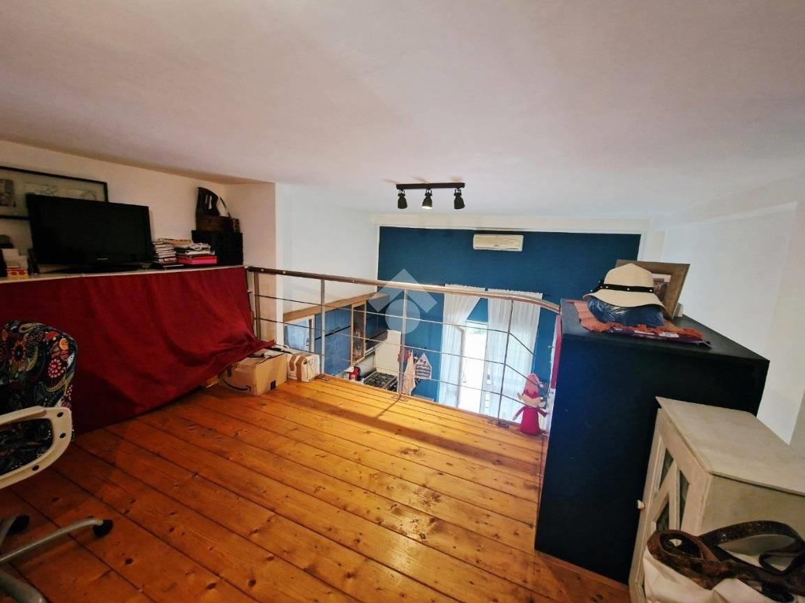 Un pratico soppalco ospita una seconda camera con cabina armadio e un’area a vista sul soggiorno, ideale come studio, zona lettura o spazio multifunzionale.