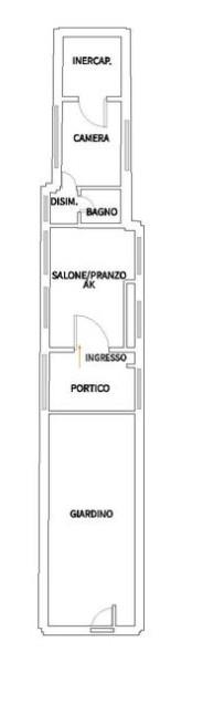 L’immobile offre una funzionale distribuzione degli spazi. Al piano terra troviamo un’accogliente zona living con cucina a vista, una camera da letto e un bagno dotato di vasca.