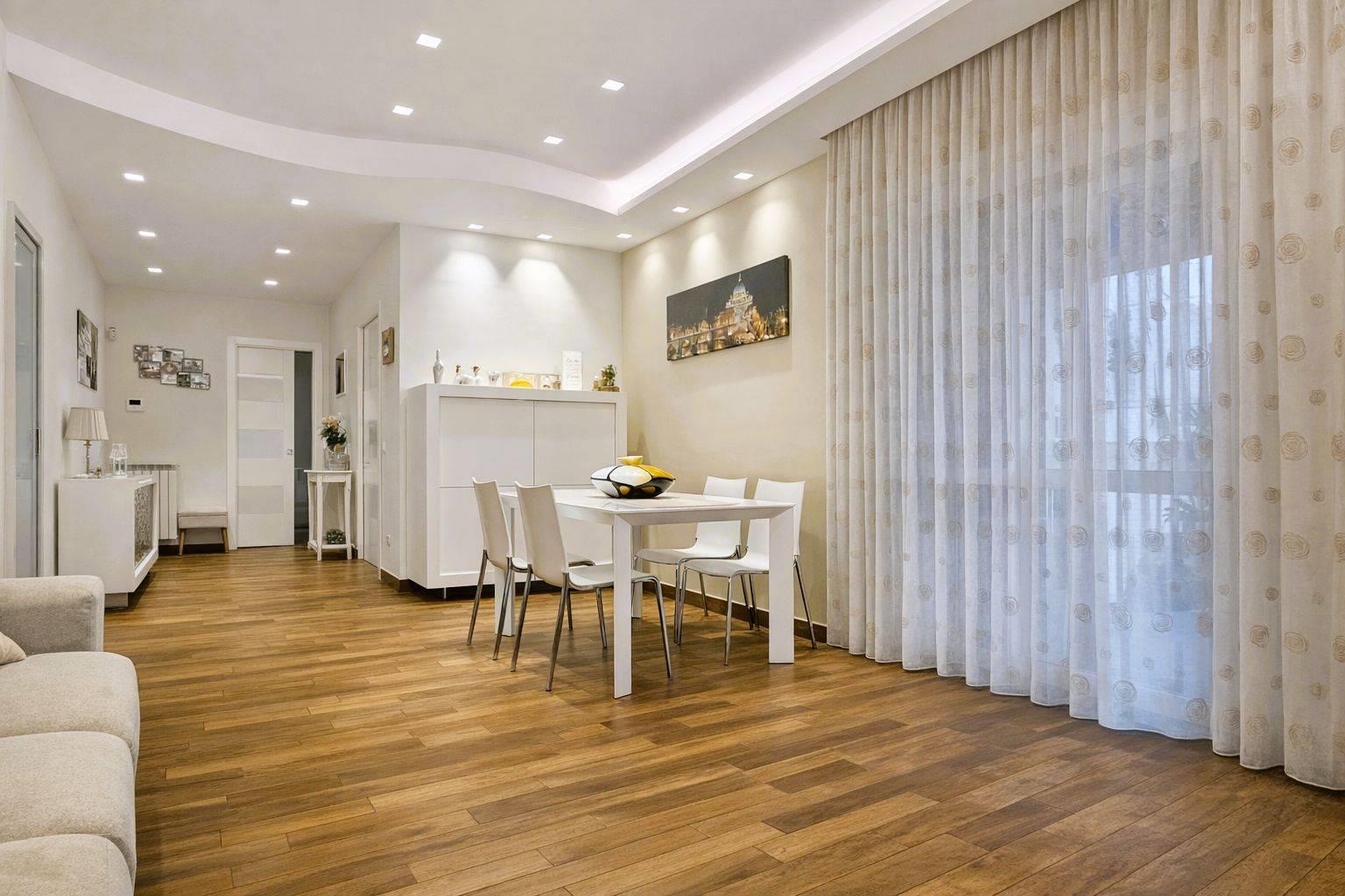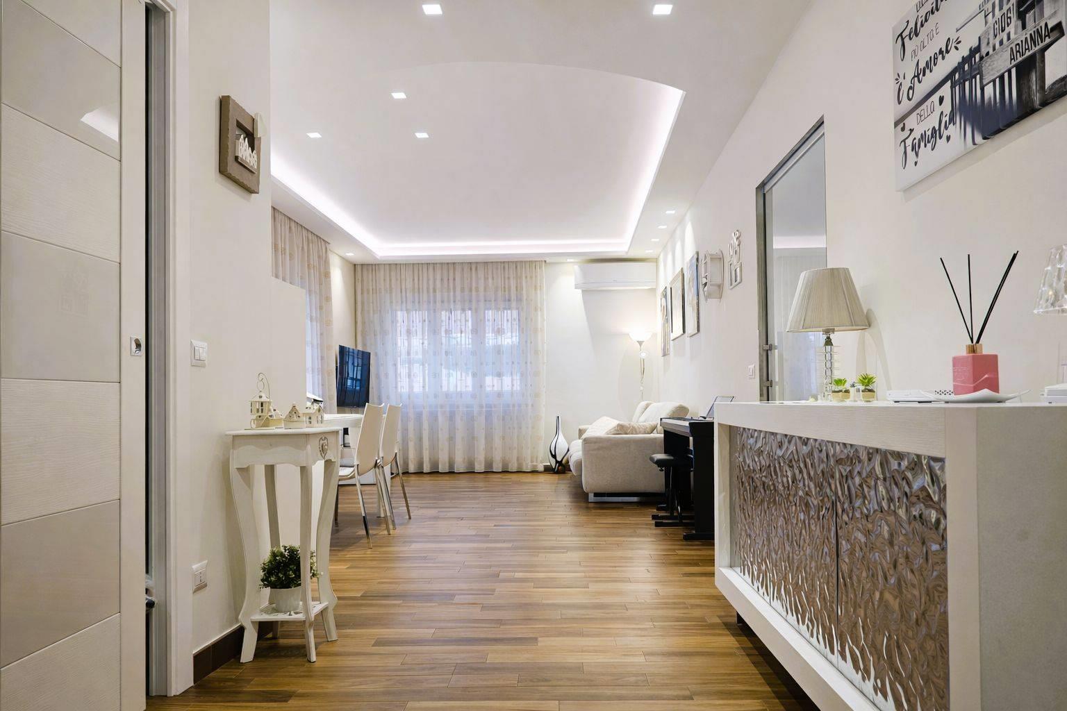 TOTALMENTE E FINEMENTE RISTRUTTURATO: pavimenti in gress porcellanato effetto Parquet, infissi Marca Schuco PVC di ultima generazione, inferriate verniciate e zincate a caldo, Zanzariere installate nel 2025, serrande elettriche su tutte le finestre, condizionatori Daikin Emura, Scalda acqua marca Rinnai, Porte battenti interne Marca Garofolo, Porte scrigno interne Marca Garofolo, Porta divisoria cucina salone in cristallo Marca Cristal, Porta blindata, Tende esterne Marca Tempotest, armadi su misura, Cucina su misura Marca Lube.