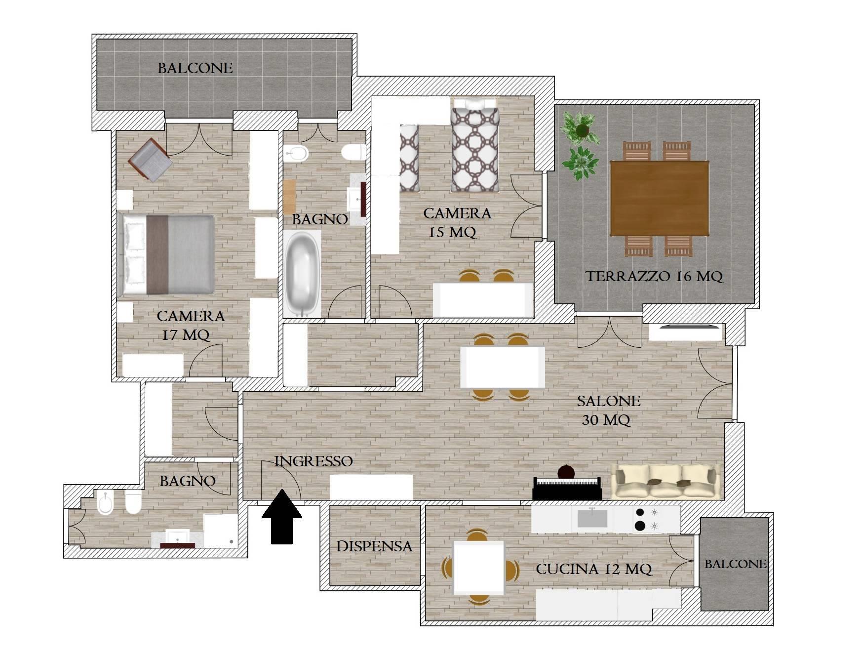 In un condomino in SENZA BARRIERE ARCHITETTONICHE con accesso da due vie parallele, ottimamente amministrato nella gestione economica e nella gestione e mantenimento delle parti comuni, proponiamo in vendita un ampio trilocale, FINEMENTE RISTRUTTURATO E PARZIALMENTE ARREDATO, PRONTO PER ESSERE ABITATO, di 105 mq calpestabili, posto al secondo piano con ascensore. Composto da: ingresso, salone servito da terrazzo abitabile, cucina abitabile con annessa la dispensa, due camere da letto matrimoniali, doppi servizi, e altri due balconi.