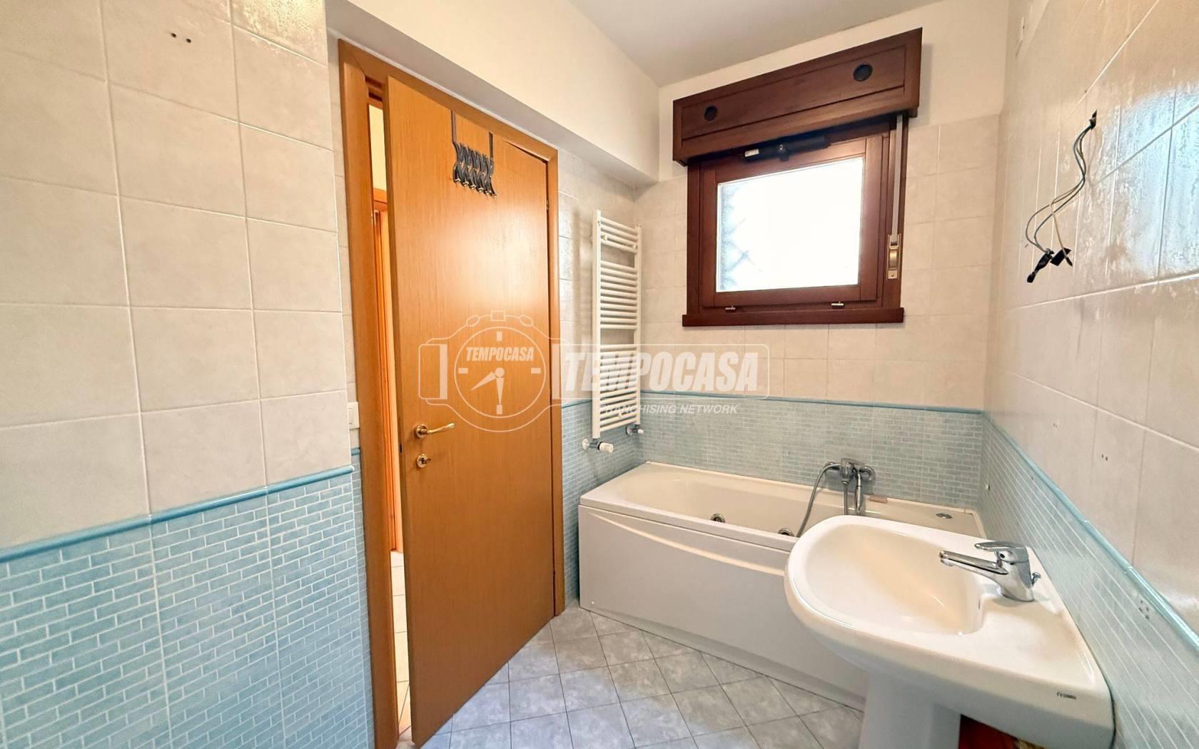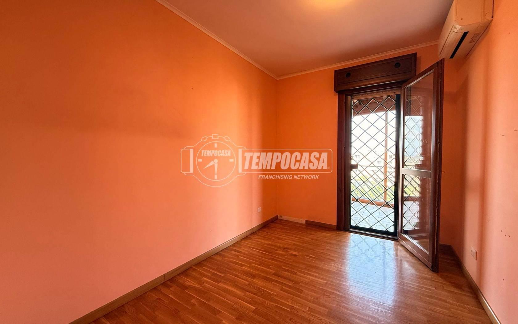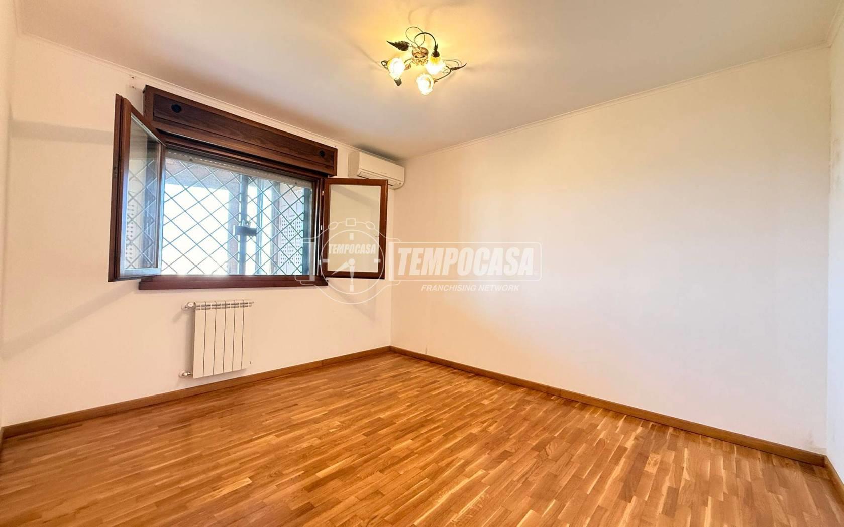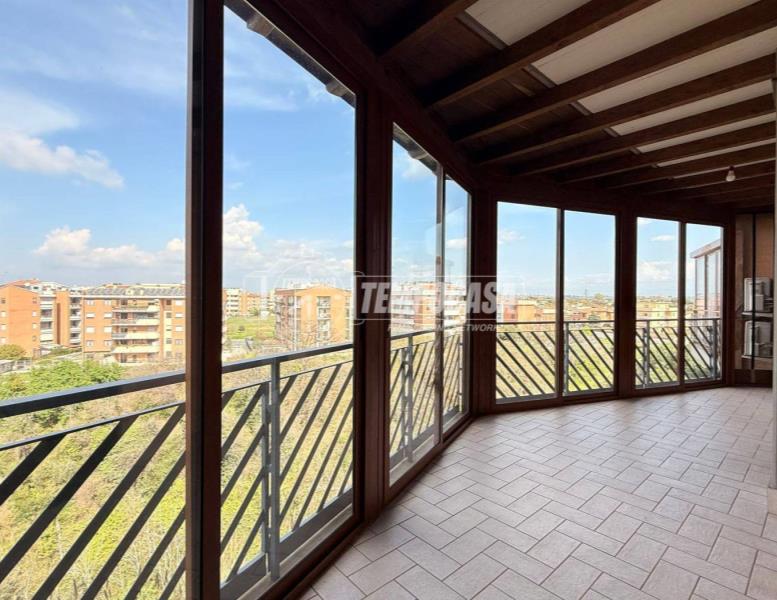 Il terrazzo è stato valorizzato da una veranda con regolare autorizzazione per la tettoia in legno lamellare e gli infissi esterni sono amovibili in alluminio doppio vetro effetto legno, creando uno spazio fruibile in tutte le stagioni.