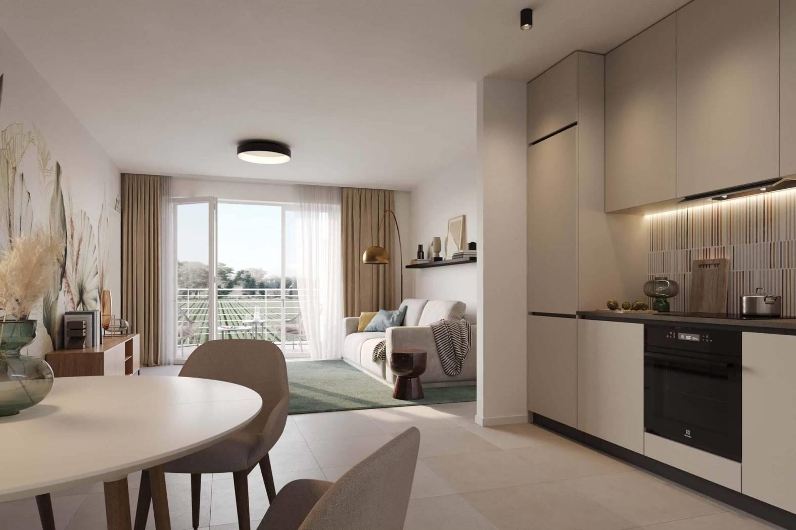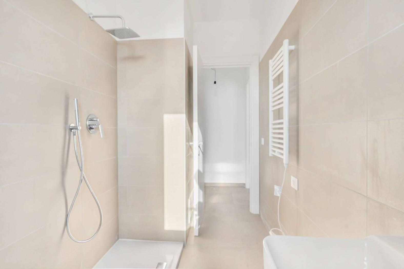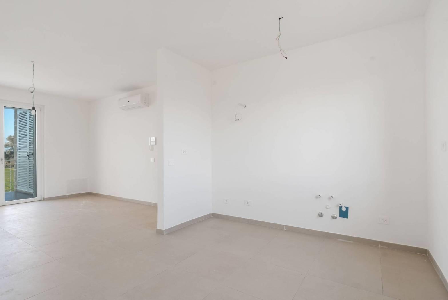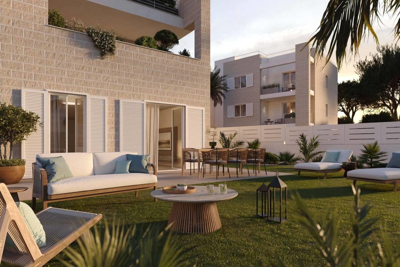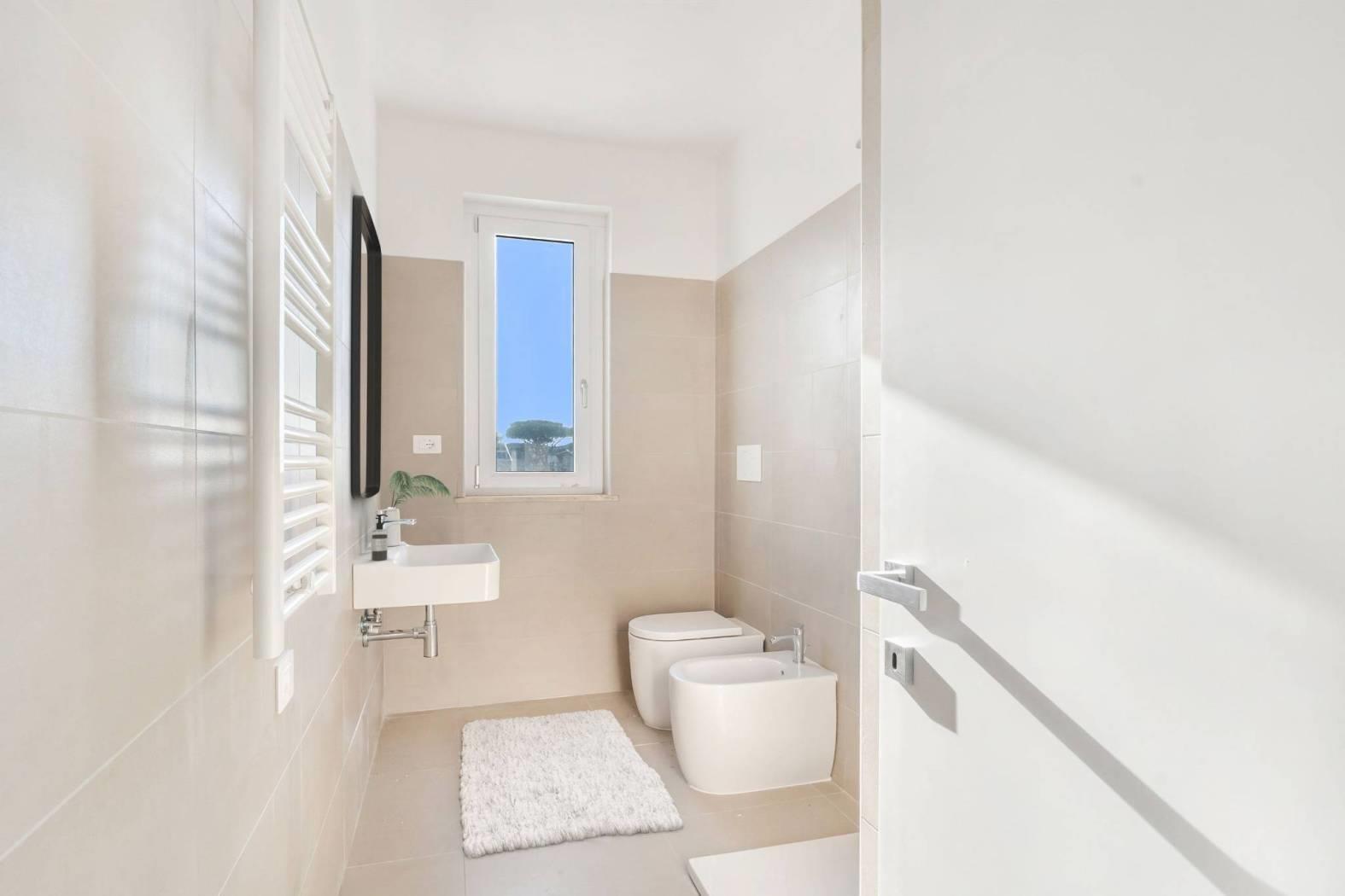 L'appartamento ha una disposizione funzionale, con un ampio salone con cucina a vista, due spaziose camere da letto, due bagni dal design moderno e un grande giardino sul quale si aprono tutti gli ambienti della casa. La proprietà viene completata da un pratico posto auto di pertinenza.