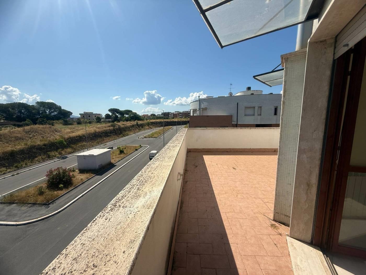 INTERNO: L'appartamento è così disposto: piccolo ingresso che ci accompagna nel soggiorno da cui è possibile accedere al terrazzo, alla cucina con balcone privato, al bagno ed antibagno. Sulla destra troviamo il corridoio che conduce verso la zona notte composta da due camera da letto di cui una con sfogo sul terrazzo, ripostiglio e bagno finestrato.